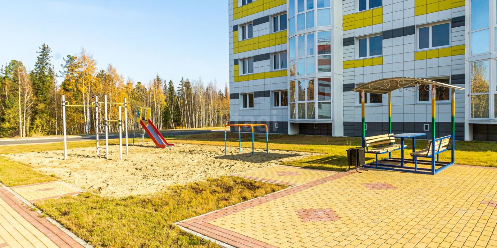 Вниманию жильцов предлагают: прекрасный зеленый двор с беседками, детскими и спортивными площадками. Также предусмотрено строительство двух детских садов, рядом с жилым комплексом есть школа.