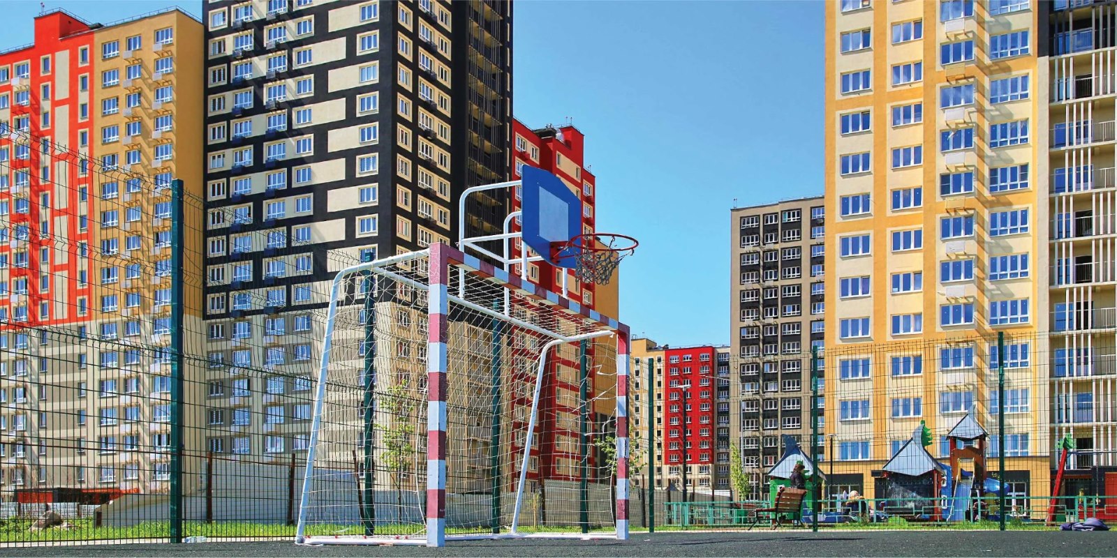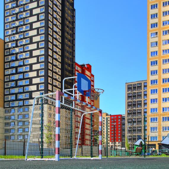 Жилые дома образуют кварталы с закрытыми внутридомовыми территориями с детскими и спортивными площадками, а во дворах всегда много солнечного света. Для большей безопасности жилые подъезды располагаются по наружному и внутреннему периметру домов. Для спецтранспорта предусмотрены технологические проезды, а для личного — паркинг.