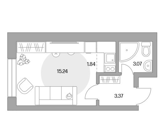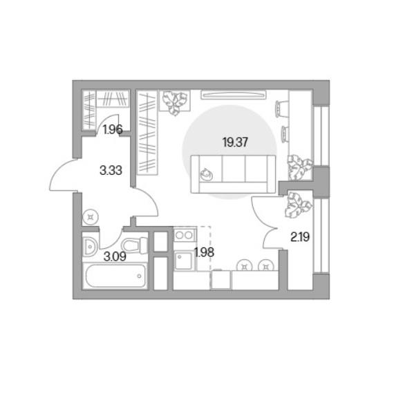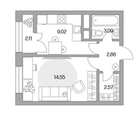 1Комната34.2 M²Общая площадь9.02 M²площадь кухникухня3этаж