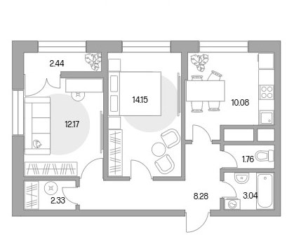 2Комнаты60.15 M²Общая площадь12.56 M²площадь кухникухня9этаж