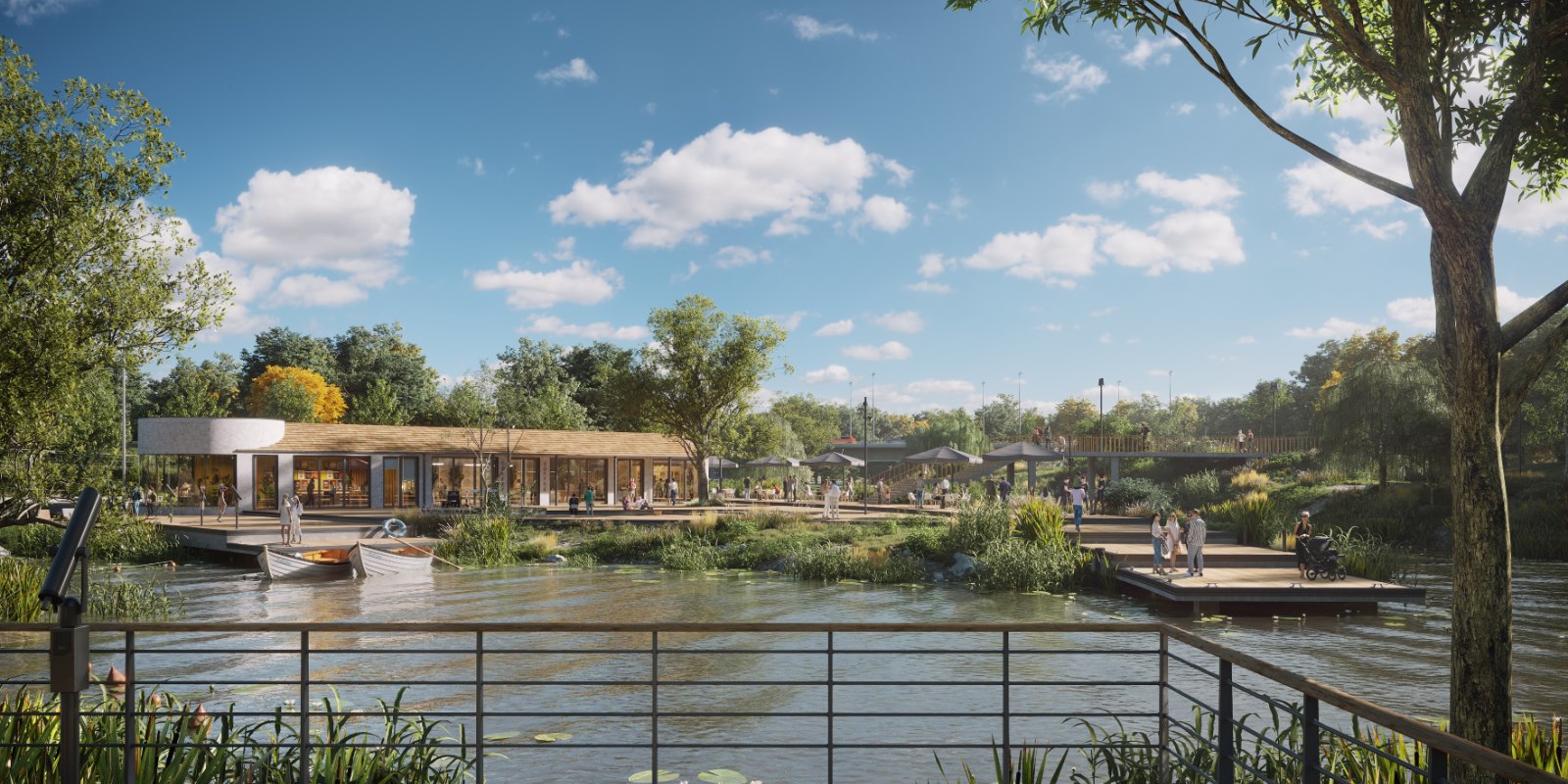 На территории появятся площадки для баскетбола, панна-футбола, ярмарочное пространство. Из парка рядом открываются виды на долину реки Сходни, которые стали вдохновением для благоустройства.