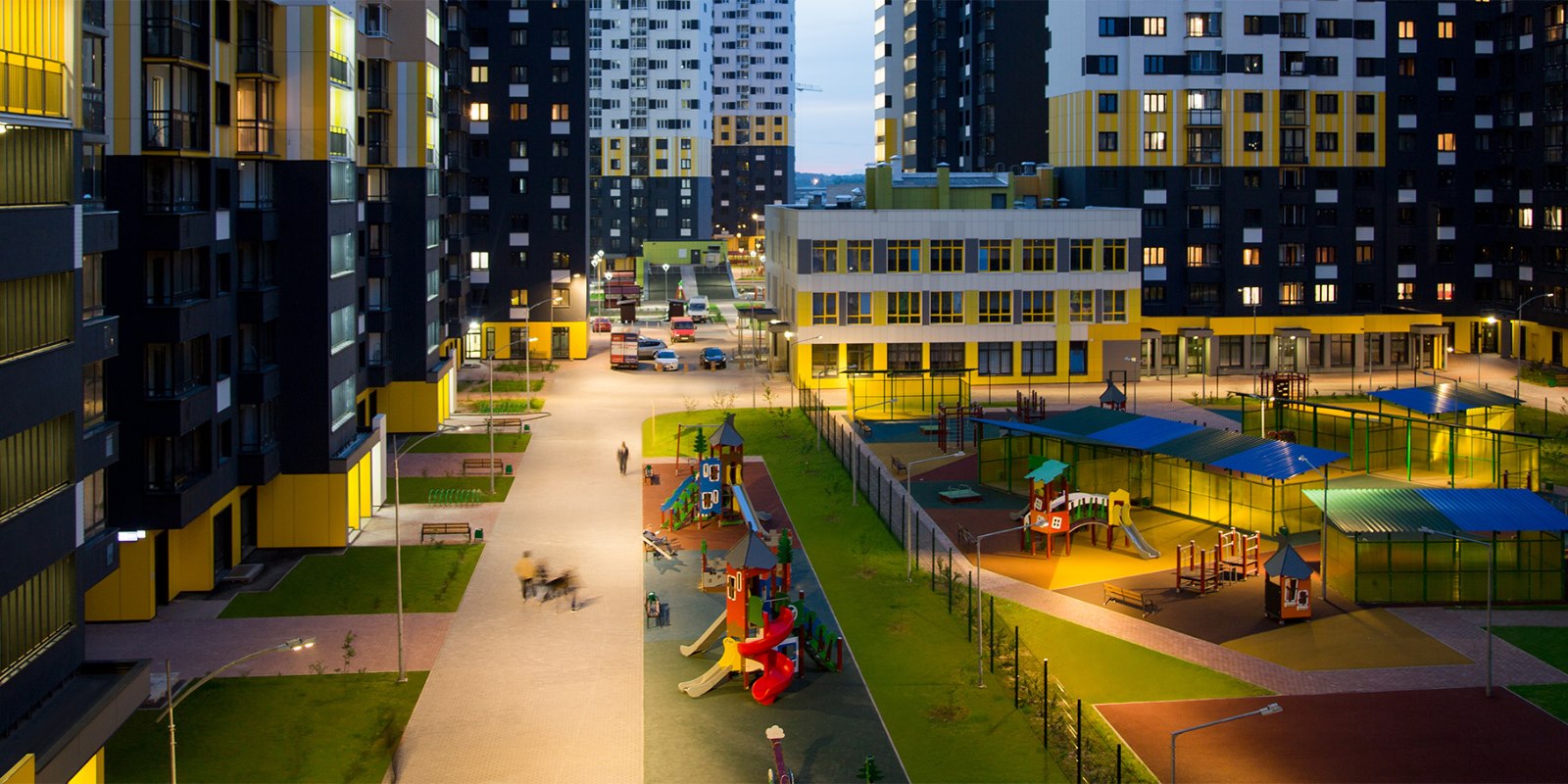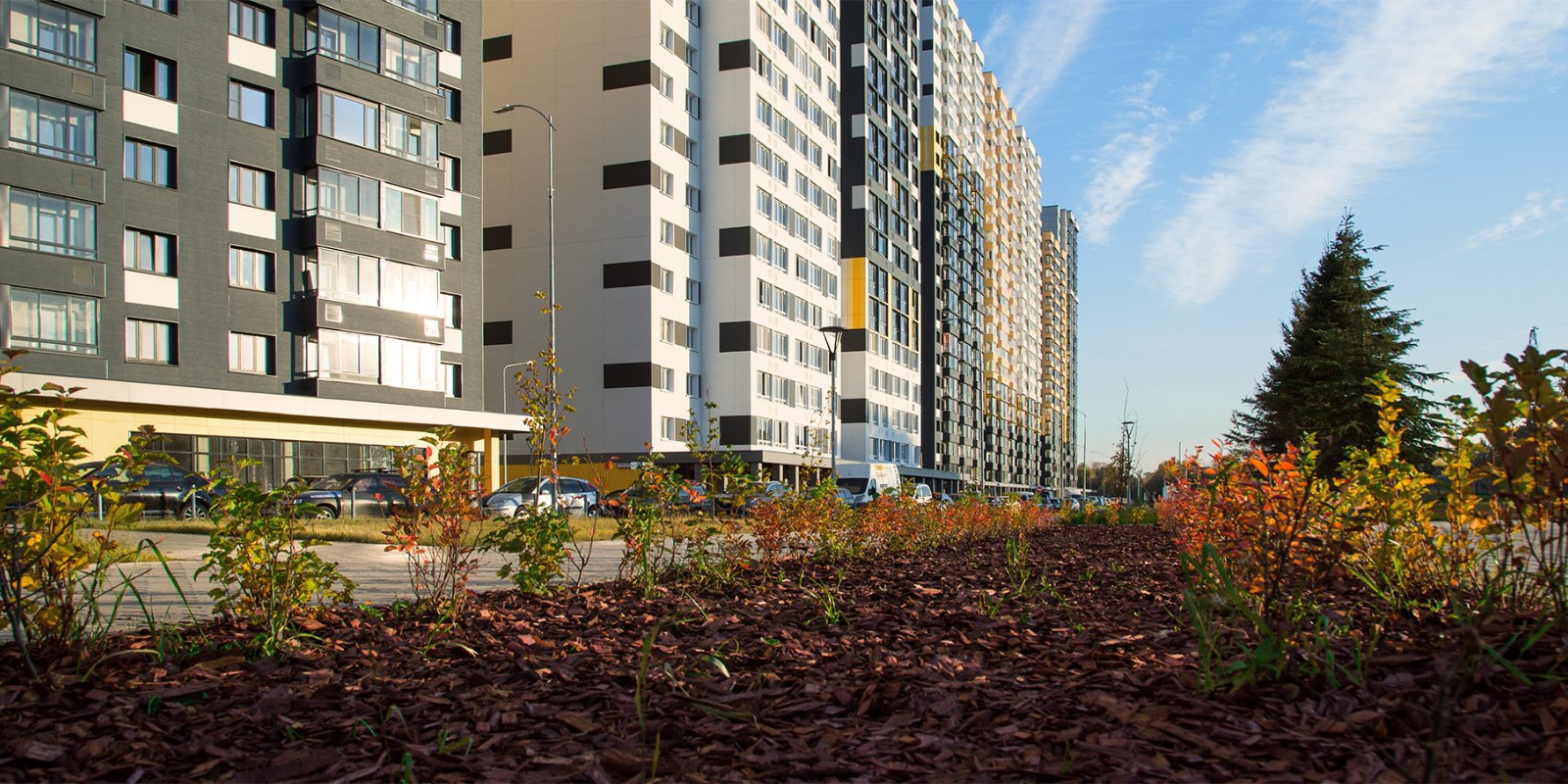 Предусмотрено полное благоустройство придомовых пространств и территорий микрорайона. Жилые дома будут образовывать кварталы с закрытыми внутридомовыми территориями с детскими и спортивными площадками, а во дворах будет много солнечного света. Для большей безопасности жилые подъезды располагаются по наружному и внутреннему периметру домов. Для спецтранспорта предусмотрены технологические проезды, а для личного — паркинг.