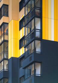 В основе архитектурной концепции проекта – гармония современного стиля и функциональности. Единая концепция фасадных решений отличается объемностью и динамикой за счет использования декоративных элементов и ярких цветов.