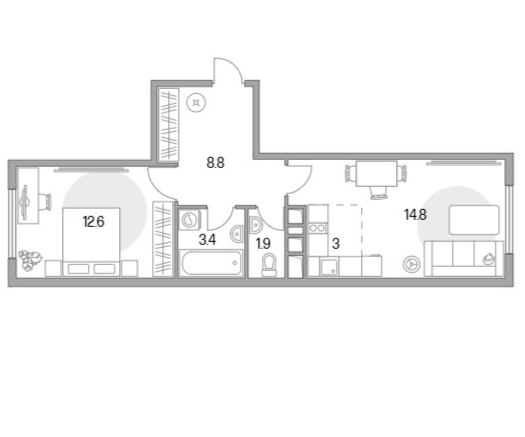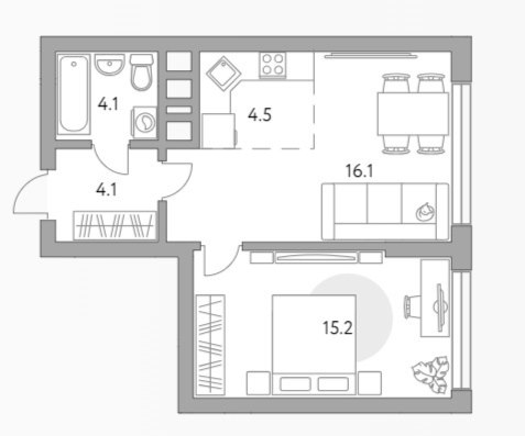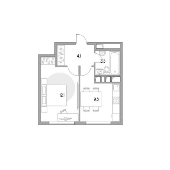 1Комната42 M²Общая площадь15.9 M²площадь кухникухня12этаж