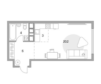 2Комнаты41.2 M²Общая площадь4.1 M²площадь кухникухня3этаж