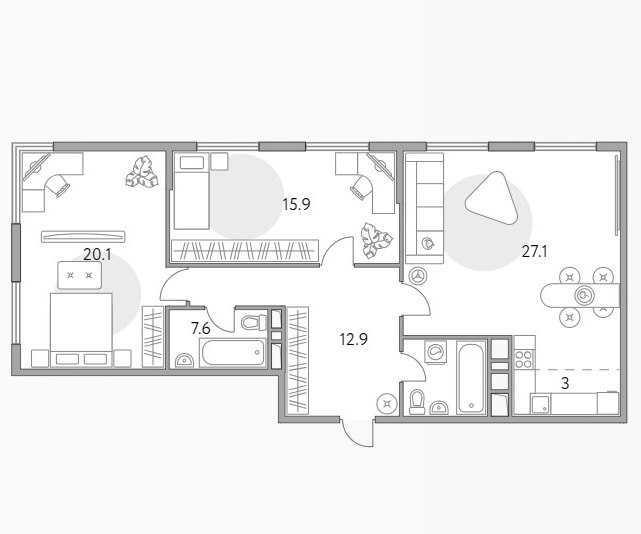 3Комнаты86.6 M²Общая площадь3 M²площадь кухникухня3этаж