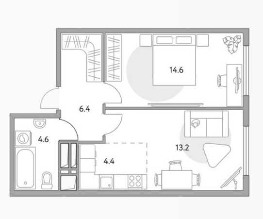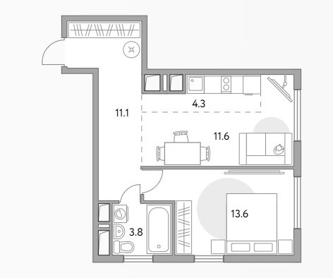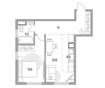 | 1-комн. | 35.8 – 42.6 | 10.98 – 11.61 млн |