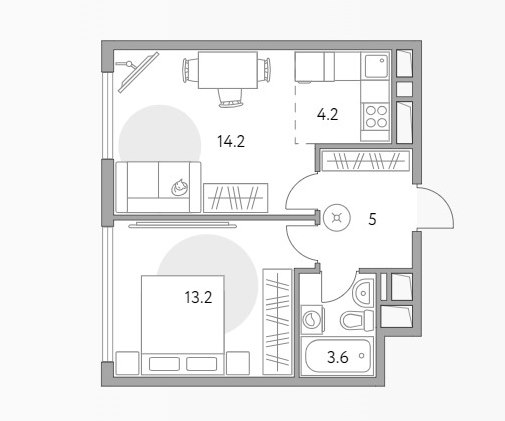 2Комнаты40.2 M²Общая площадь4.2 M²площадь кухникухня18этаж