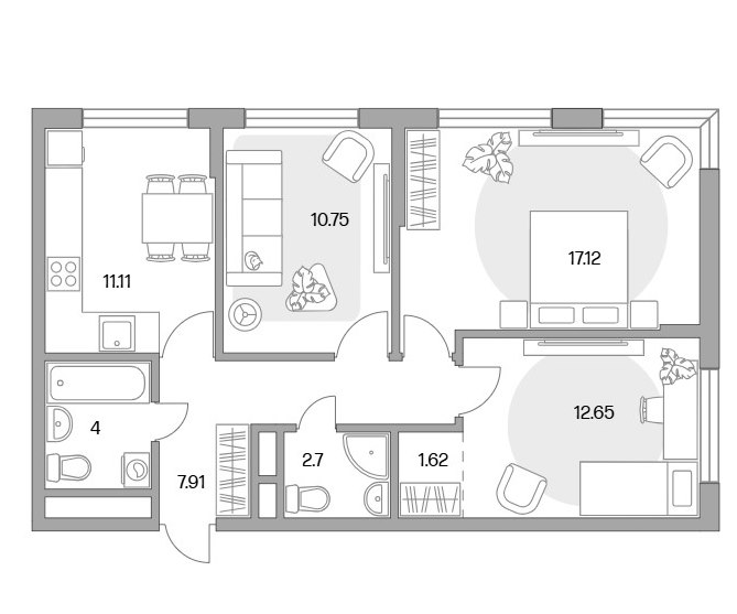 | 3-комн. | 67.9 – 76.7 | 13.49 – 17.16 млн |