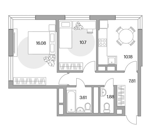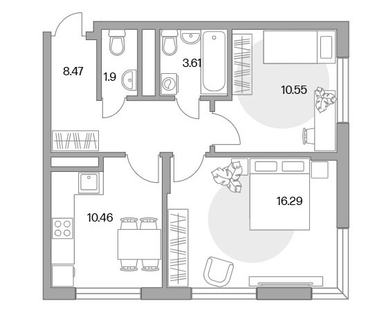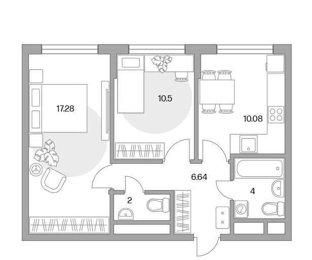 2Комнаты51.28 M²Общая площадь10.46 M²площадь кухникухня2этаж