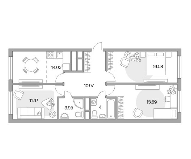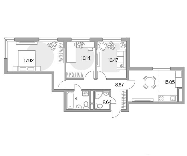 3Комнаты68.89 M²Общая площадь15.05 M²площадь кухникухня3этаж