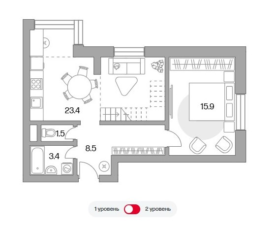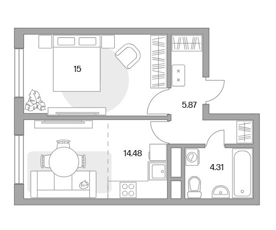 1Комната39.66 M²Общая площадь14.48 M²площадь кухникухня2этаж