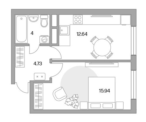 1Комната37.31 M²Общая площадь12.64 M²площадь кухникухня5этаж