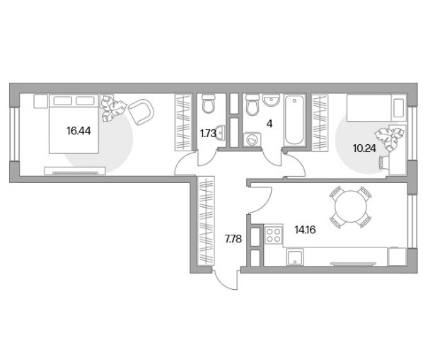 2Комнаты54.35 M²Общая площадь14.16 M²площадь кухникухня2этаж