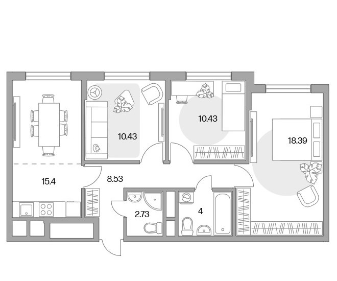 3Комнаты69.91 M²Общая площадь15.4 M²площадь кухникухня2этаж