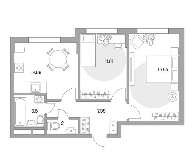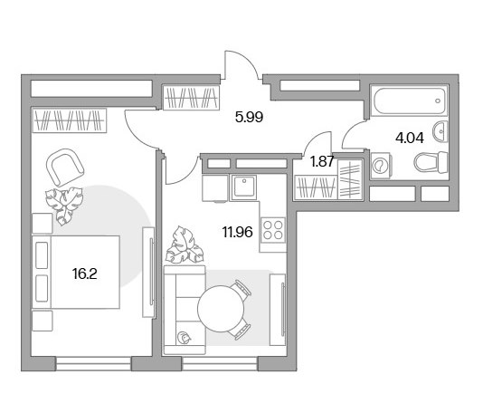 1Комната40.66 M²Общая площадь11.96 M²площадь кухникухня2этаж
