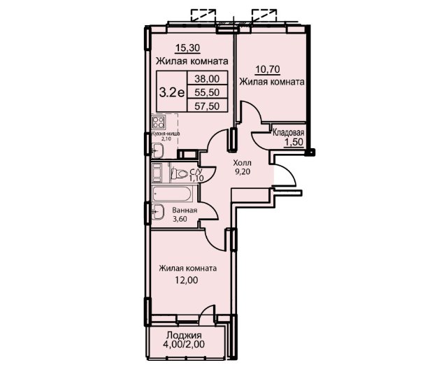 3Комнаты57.5 M²Общая площадь17.4 M²площадь кухникухня9этаж