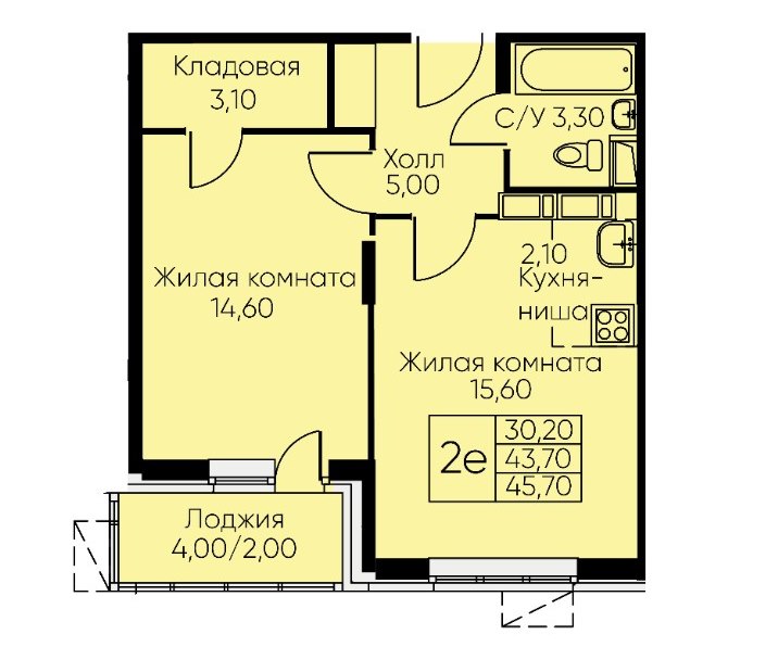 2Комнаты45.7 M²Общая площадь17.7 M²площадь кухникухня12этаж