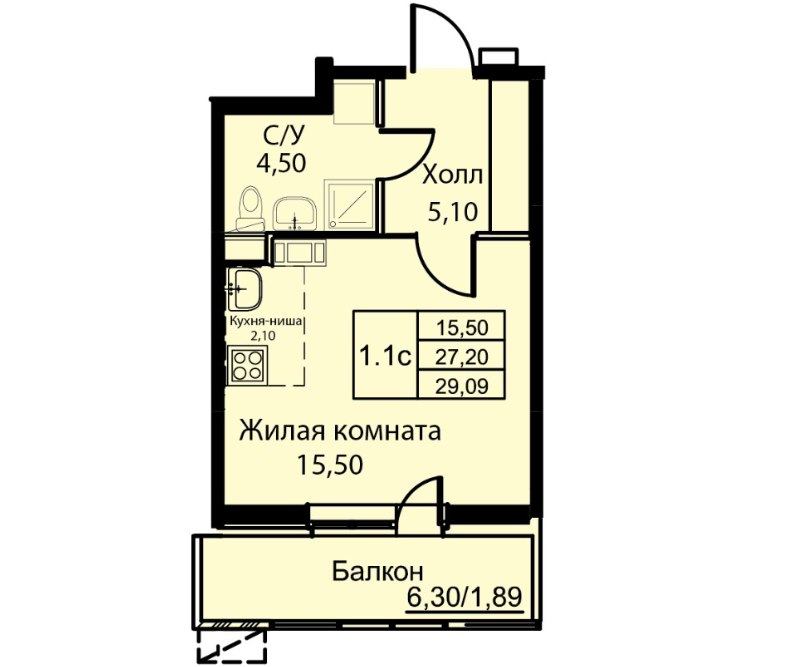 1Комната29.09 M²Общая площадь0 M²площадь кухникухня6этаж