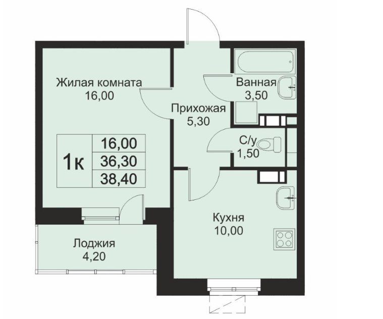 1Комната38.4 M²Общая площадь10 M²площадь кухникухня11этаж