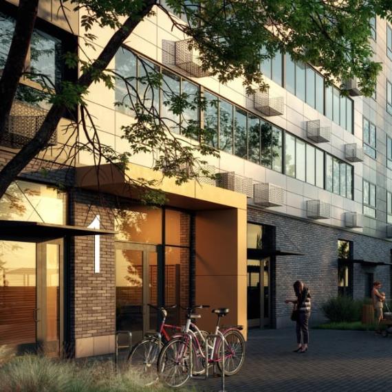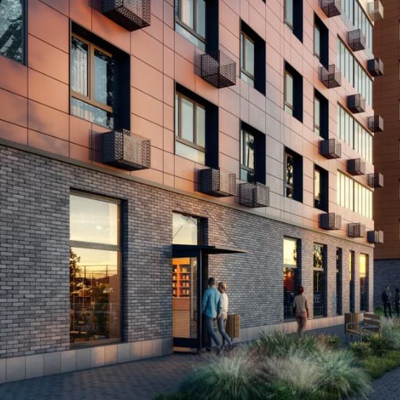 Монолитно-кирпичные дома. Архитектура жилого района выдержана в едином стиле с тщательно подобранной цветовой гаммой. В корпусах запроектировано угловое остекление и оконные проёмы увеличенной площади.