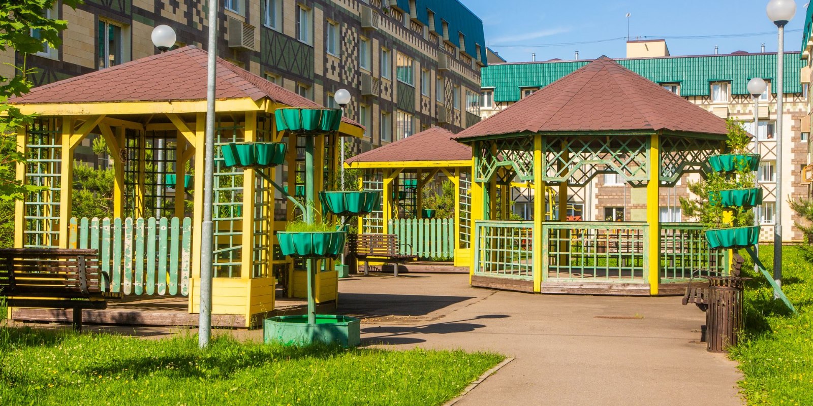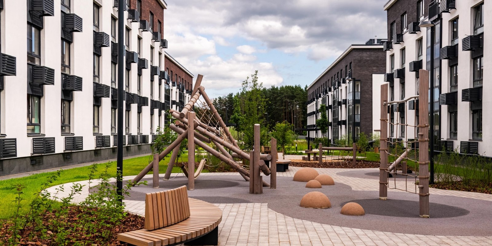 В каждом дворе предусмотрены детские и спортивные площадки, беседки, места для прогулок на свежем воздухе. Кроме того, в самом районе реализована экологическая концепция «двор без машин», обустроены прогулочные бульвары.