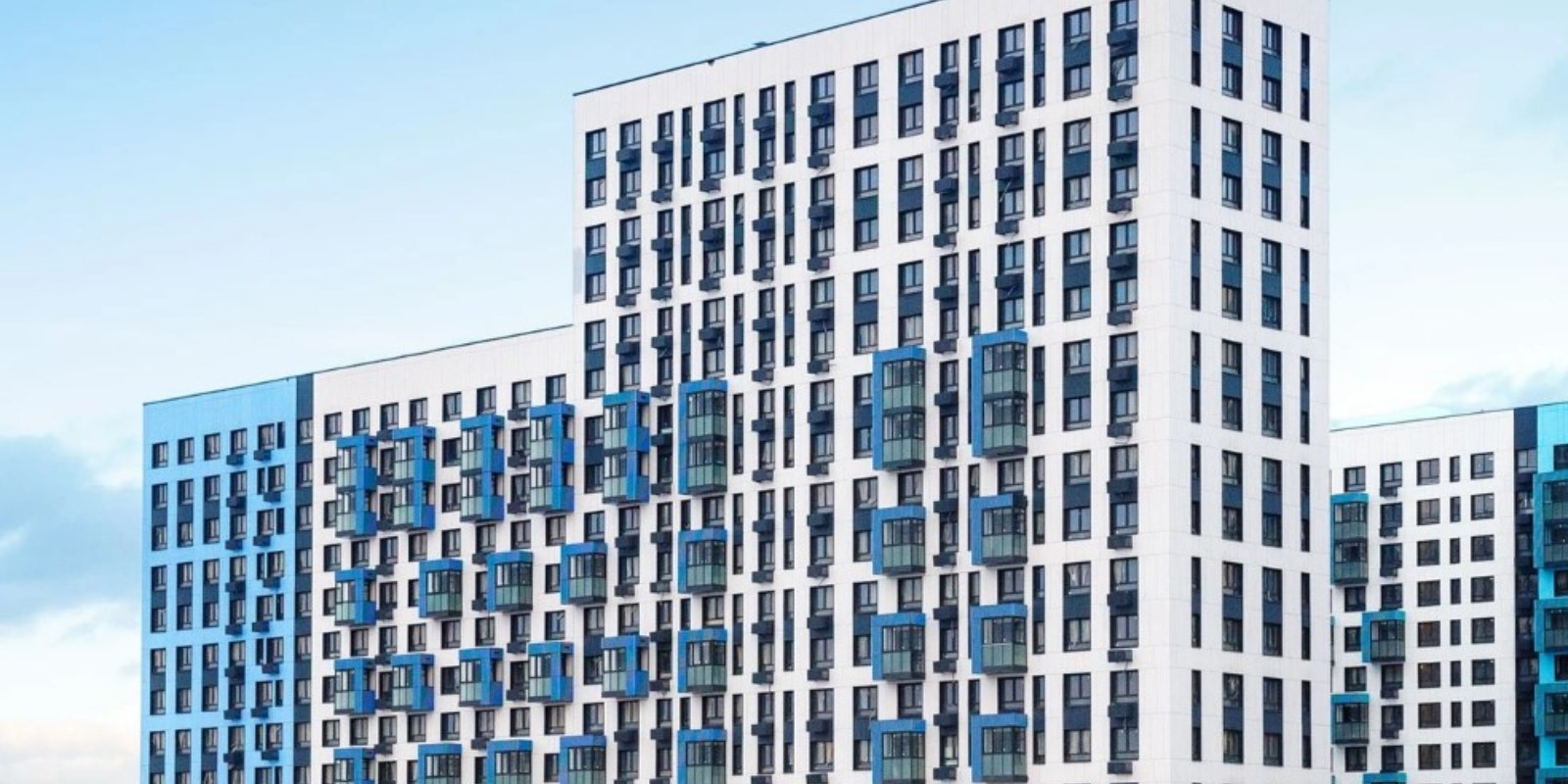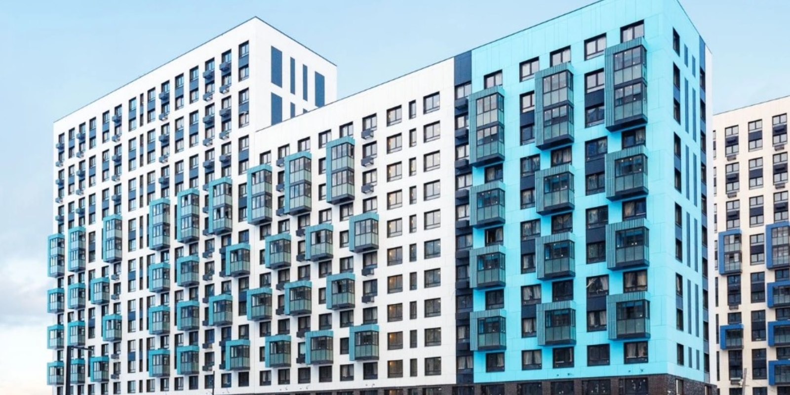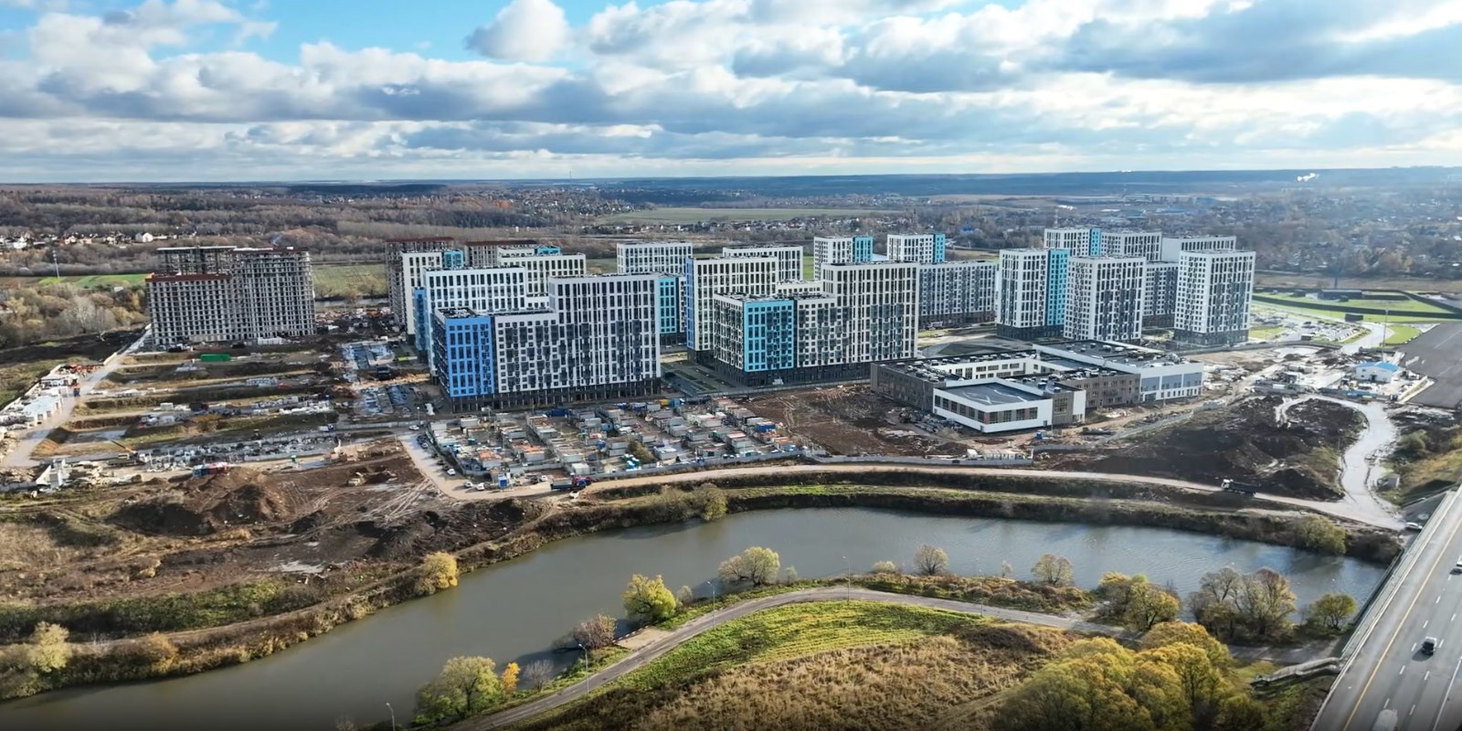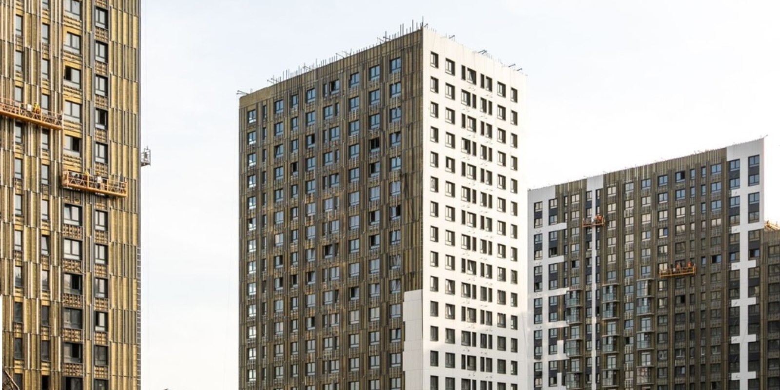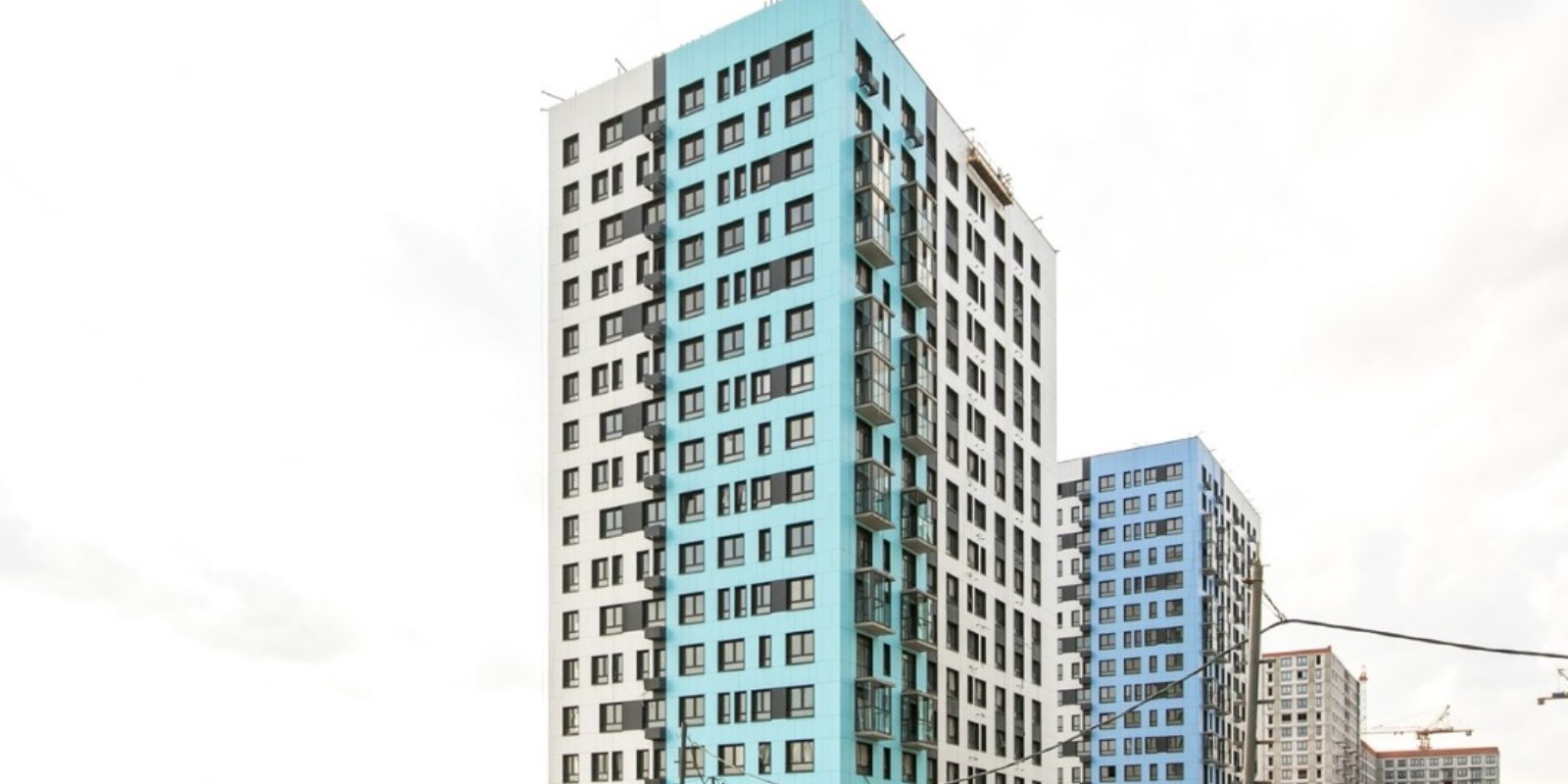 Монолитные дома высотой 12–17 этажей с комбинированными фасадами из кирпича и фиброцементных плит как будто всегда здесь были — так гармонично они выглядят в природном ландшафте.