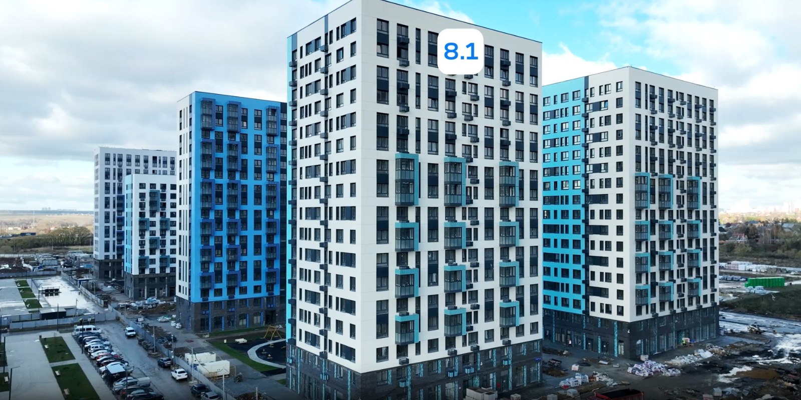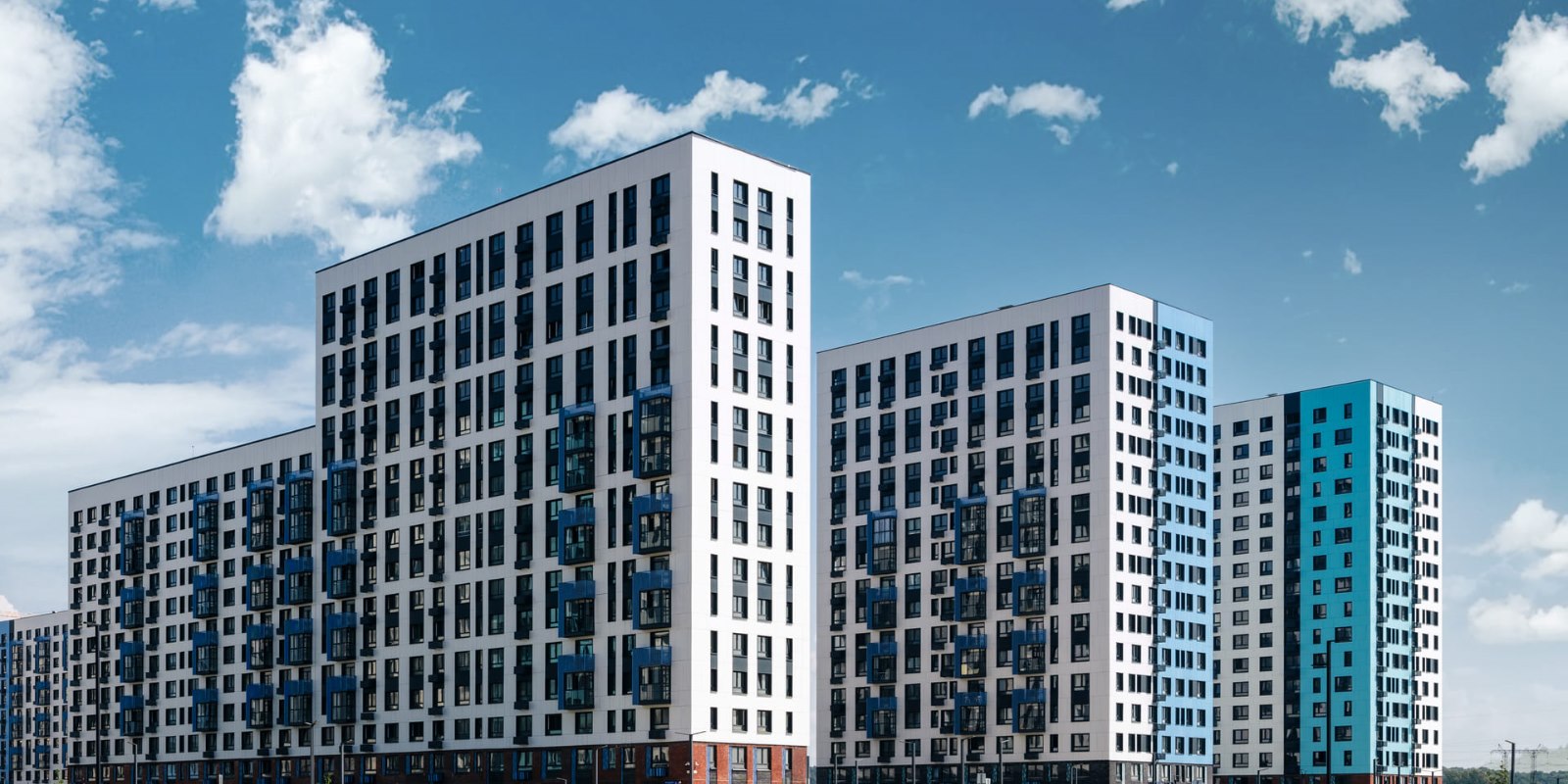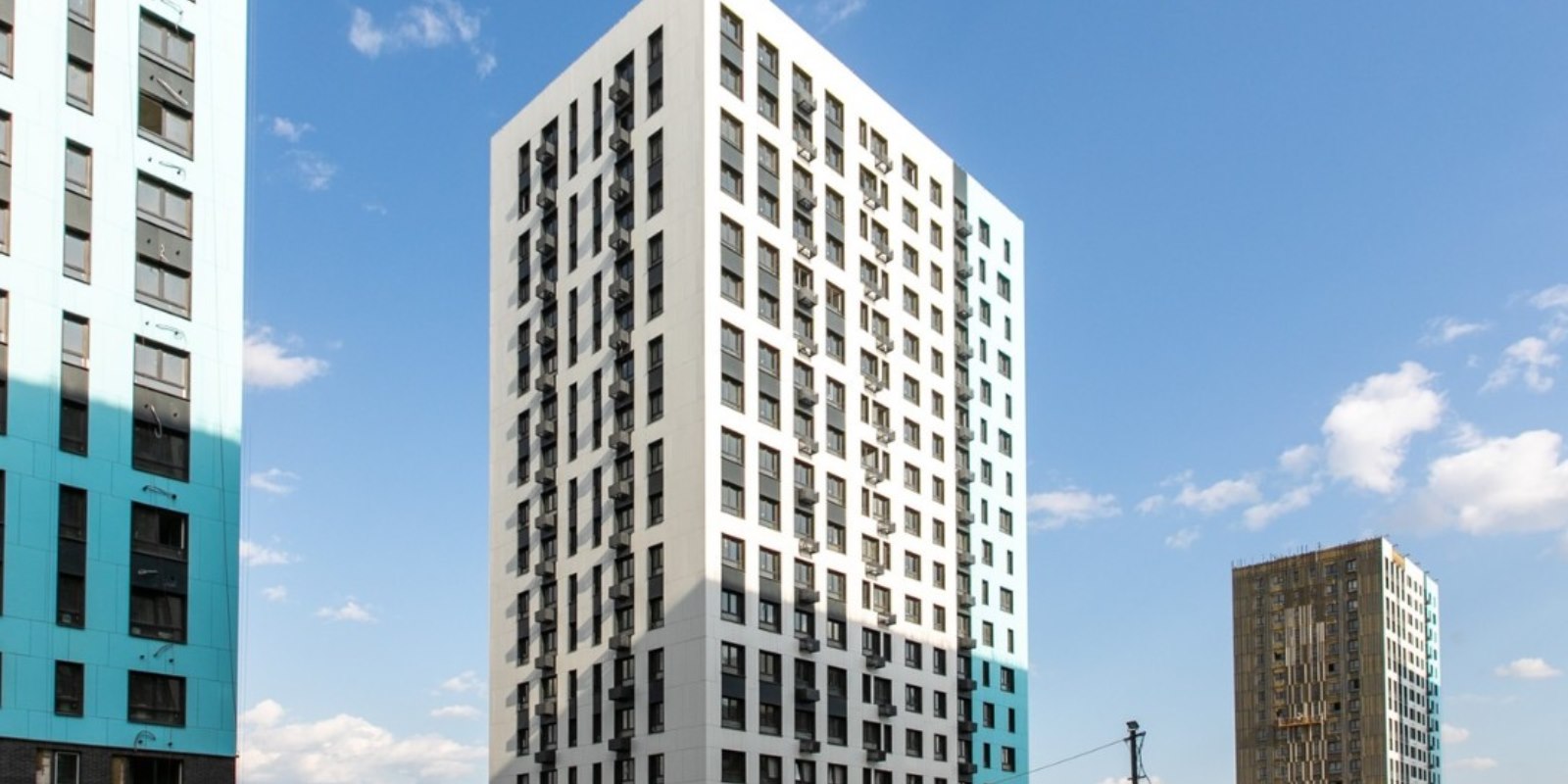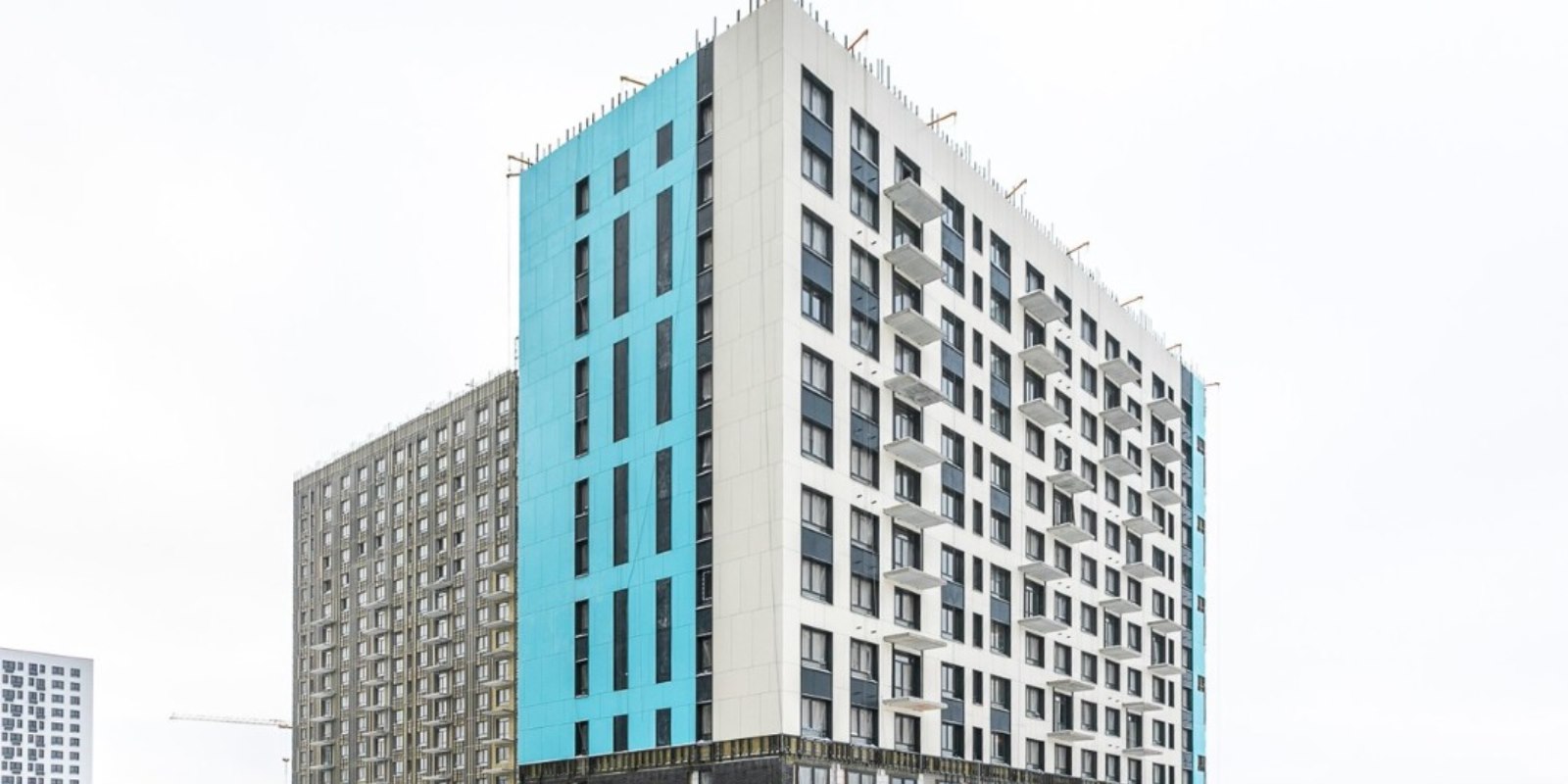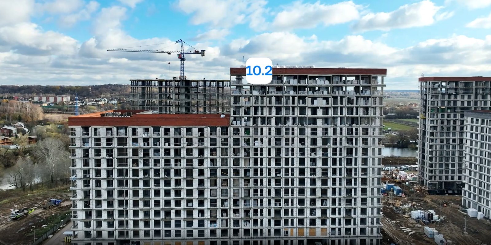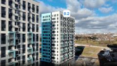 Монолитные дома высотой 12–17 этажей с комбинированными фасадами из кирпича и фиброцементных плит как будто всегда здесь были — так гармонично они выглядят в природном ландшафте.