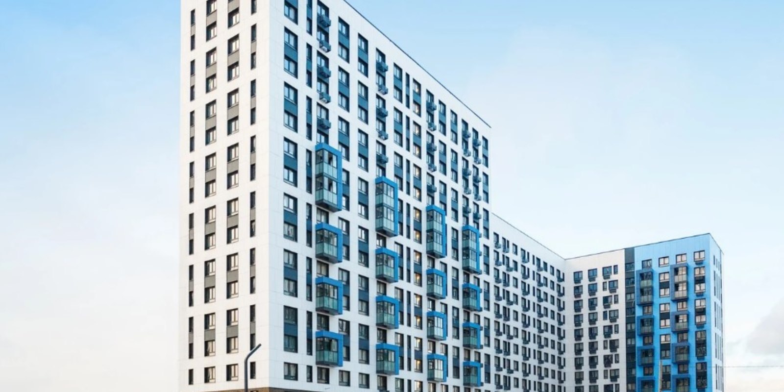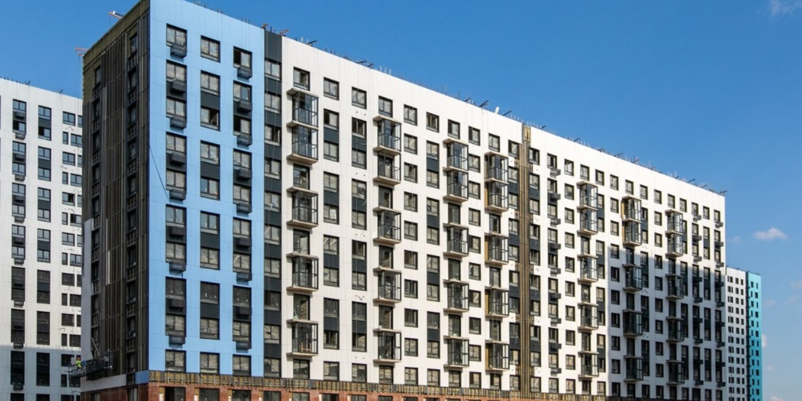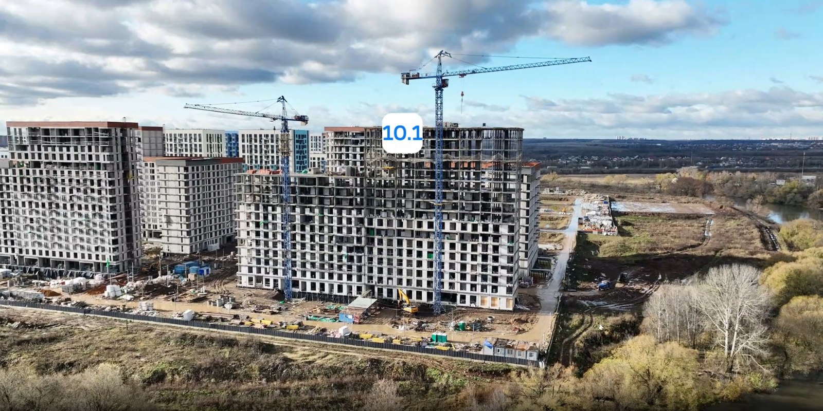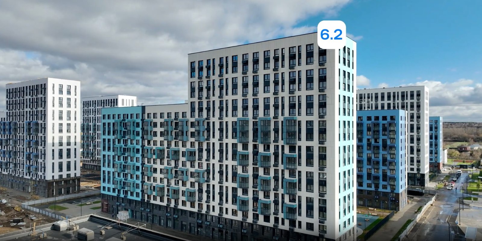 Монолитные дома высотой 12–17 этажей с комбинированными фасадами из кирпича и фиброцементных плит как будто всегда здесь были — так гармонично они выглядят в природном ландшафте.
