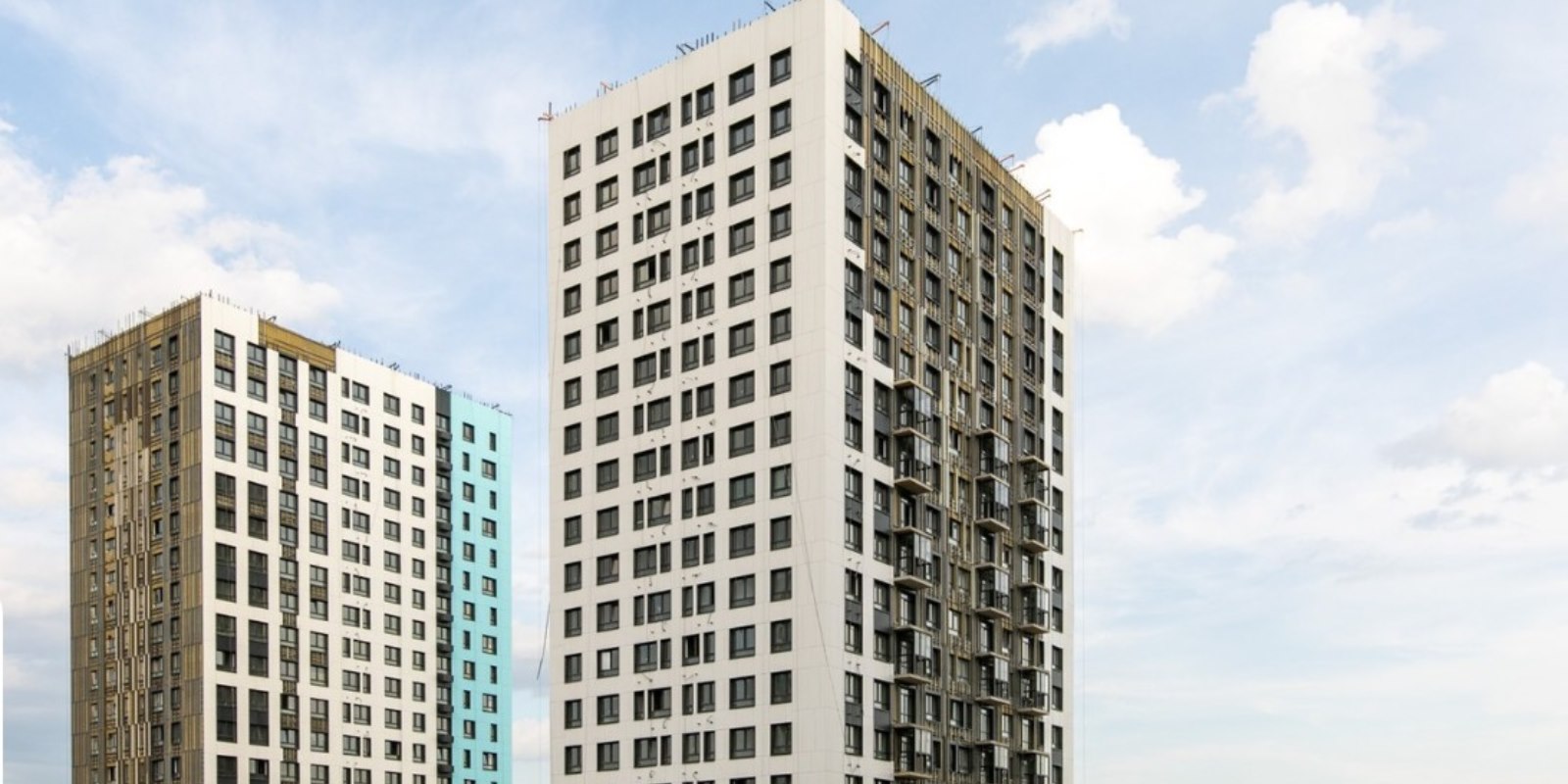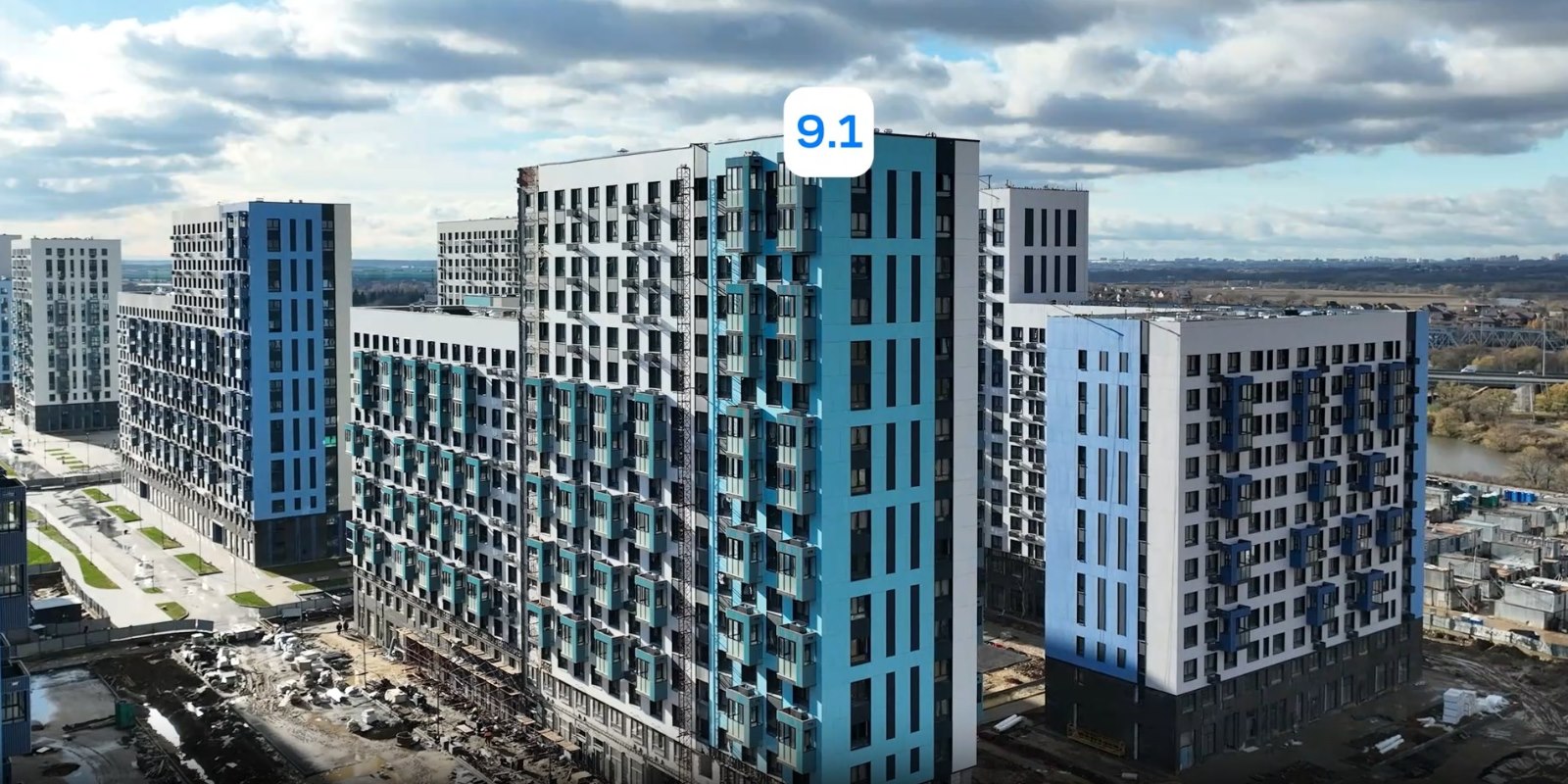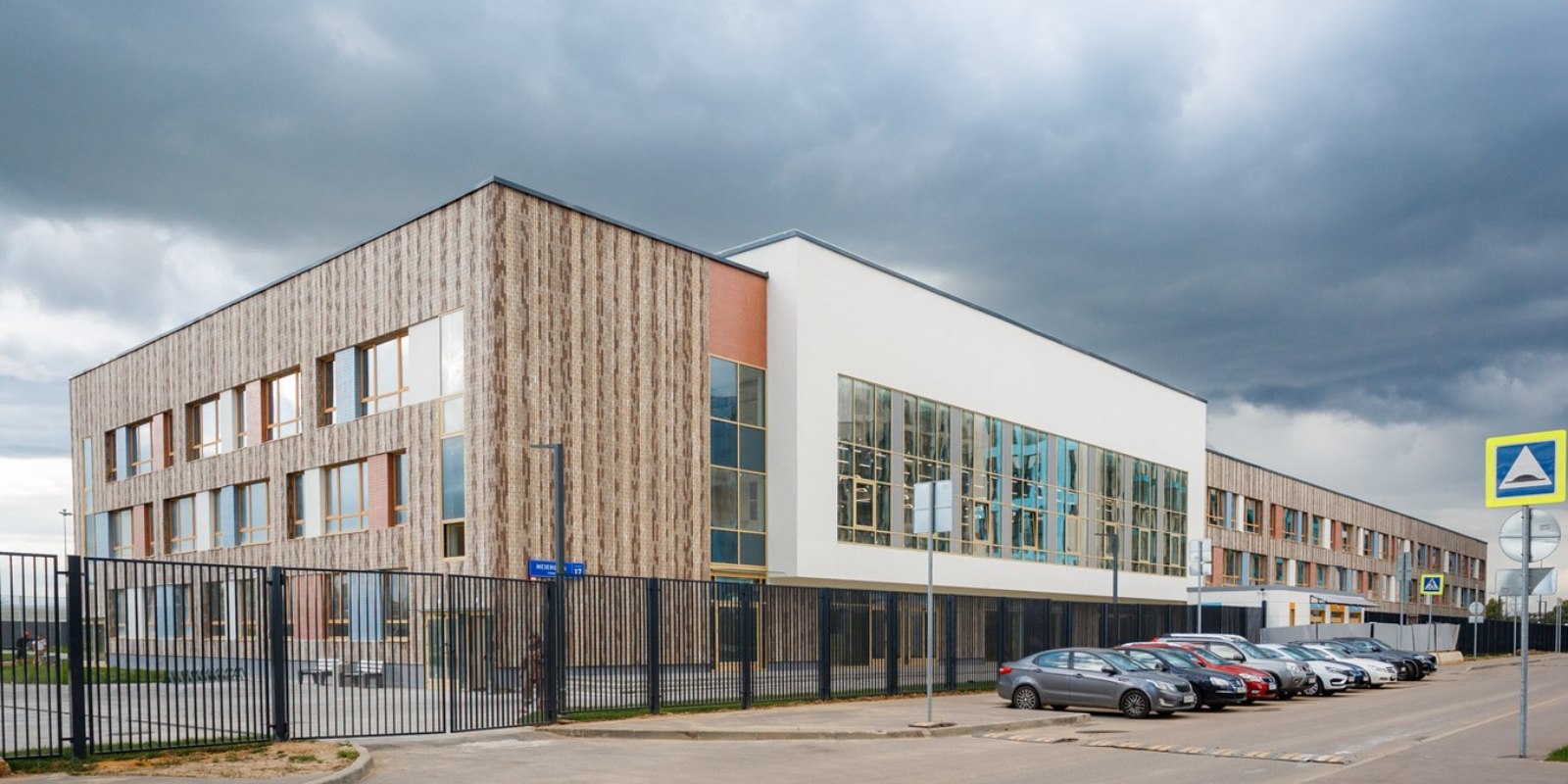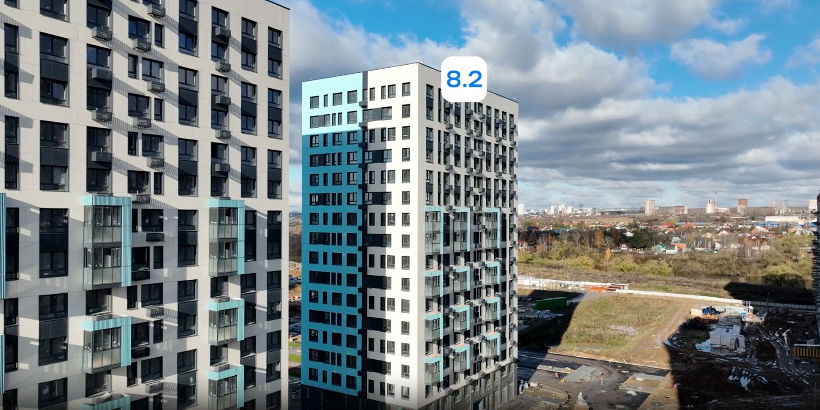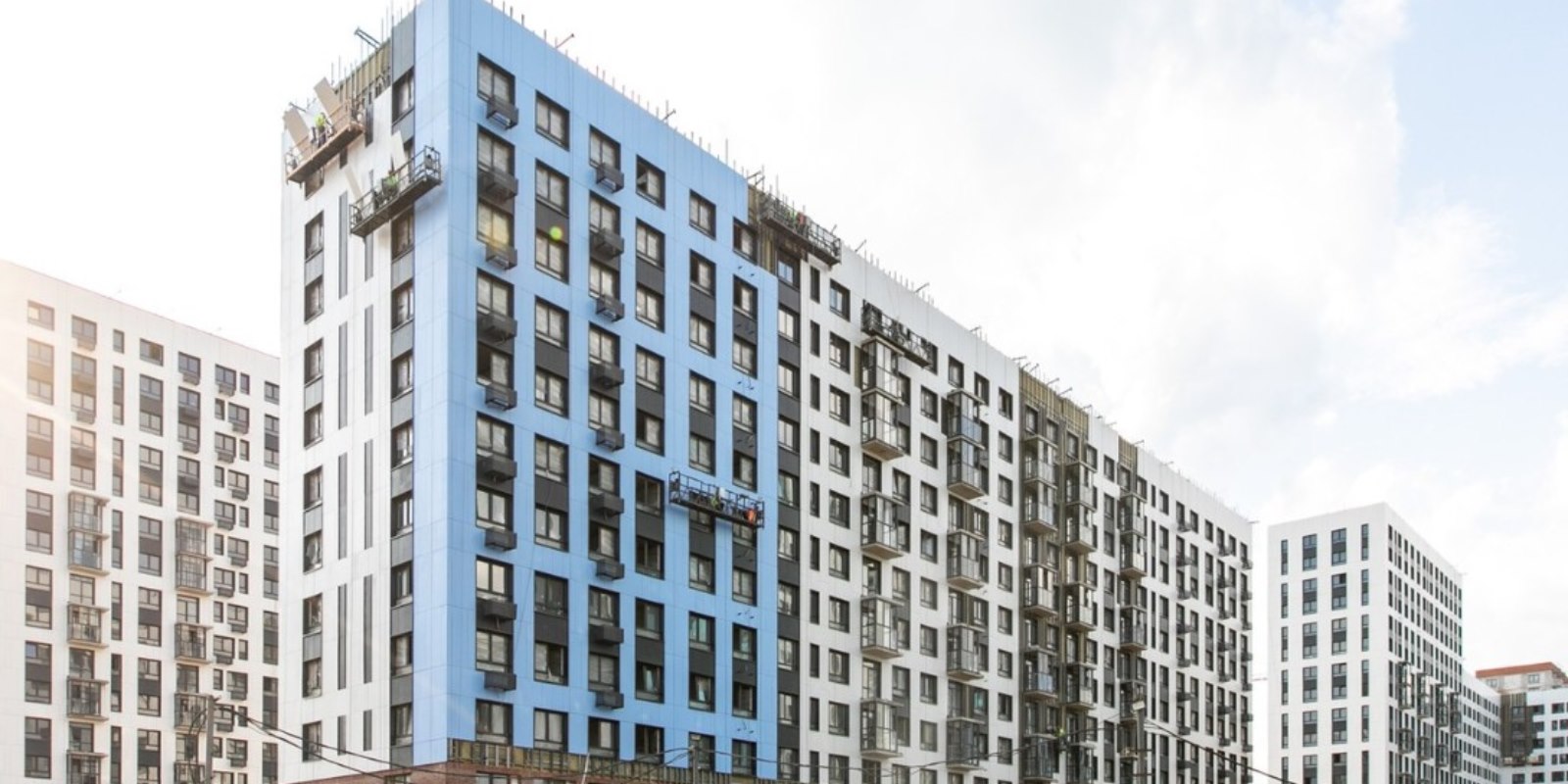 Монолитные дома высотой 12–17 этажей с комбинированными фасадами из кирпича и фиброцементных плит как будто всегда здесь были — так гармонично они выглядят в природном ландшафте.
