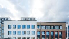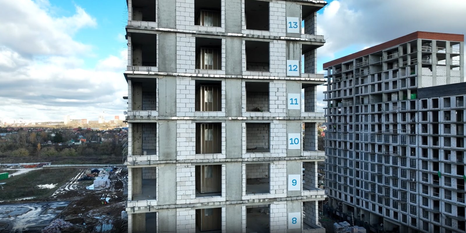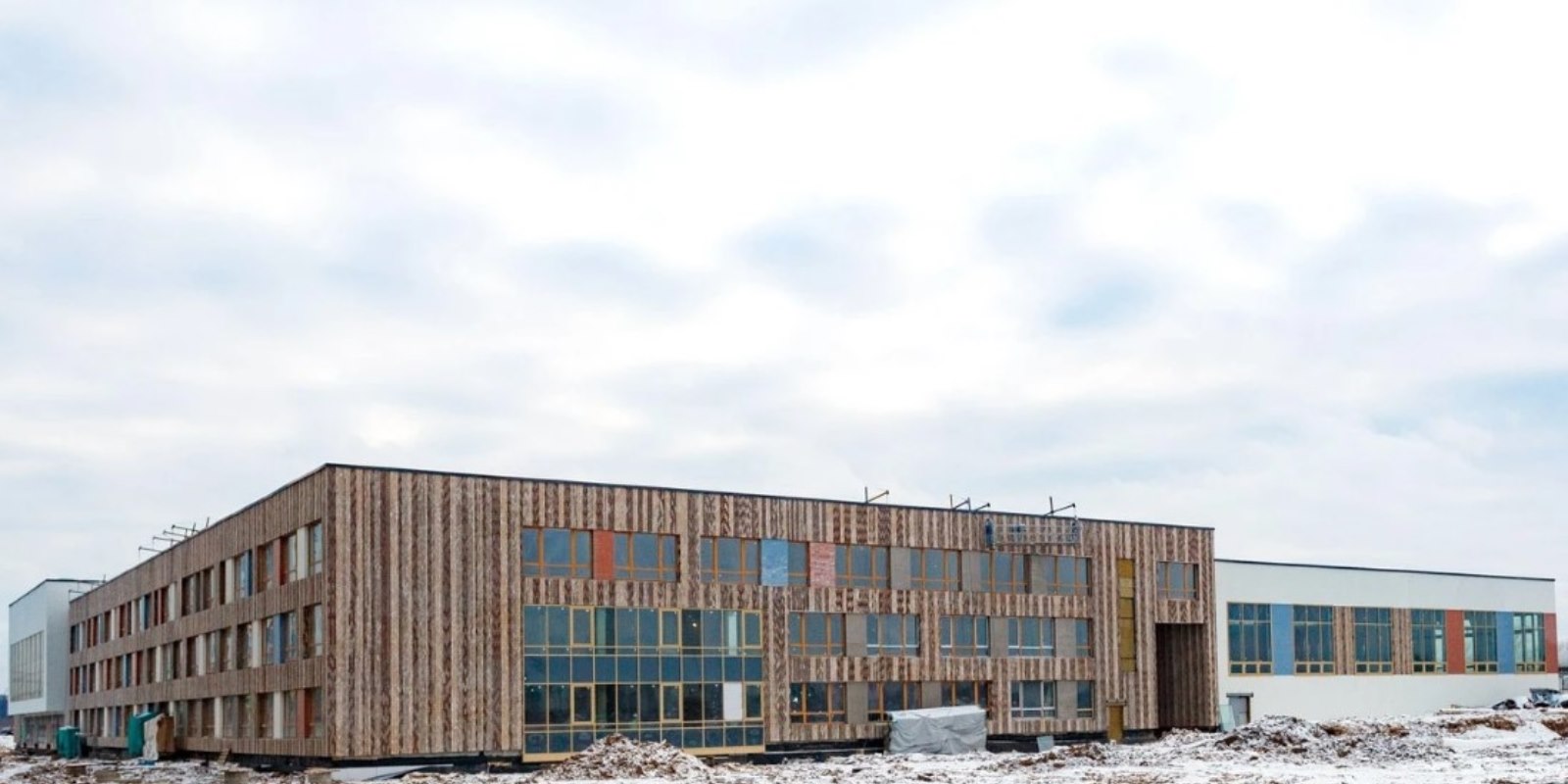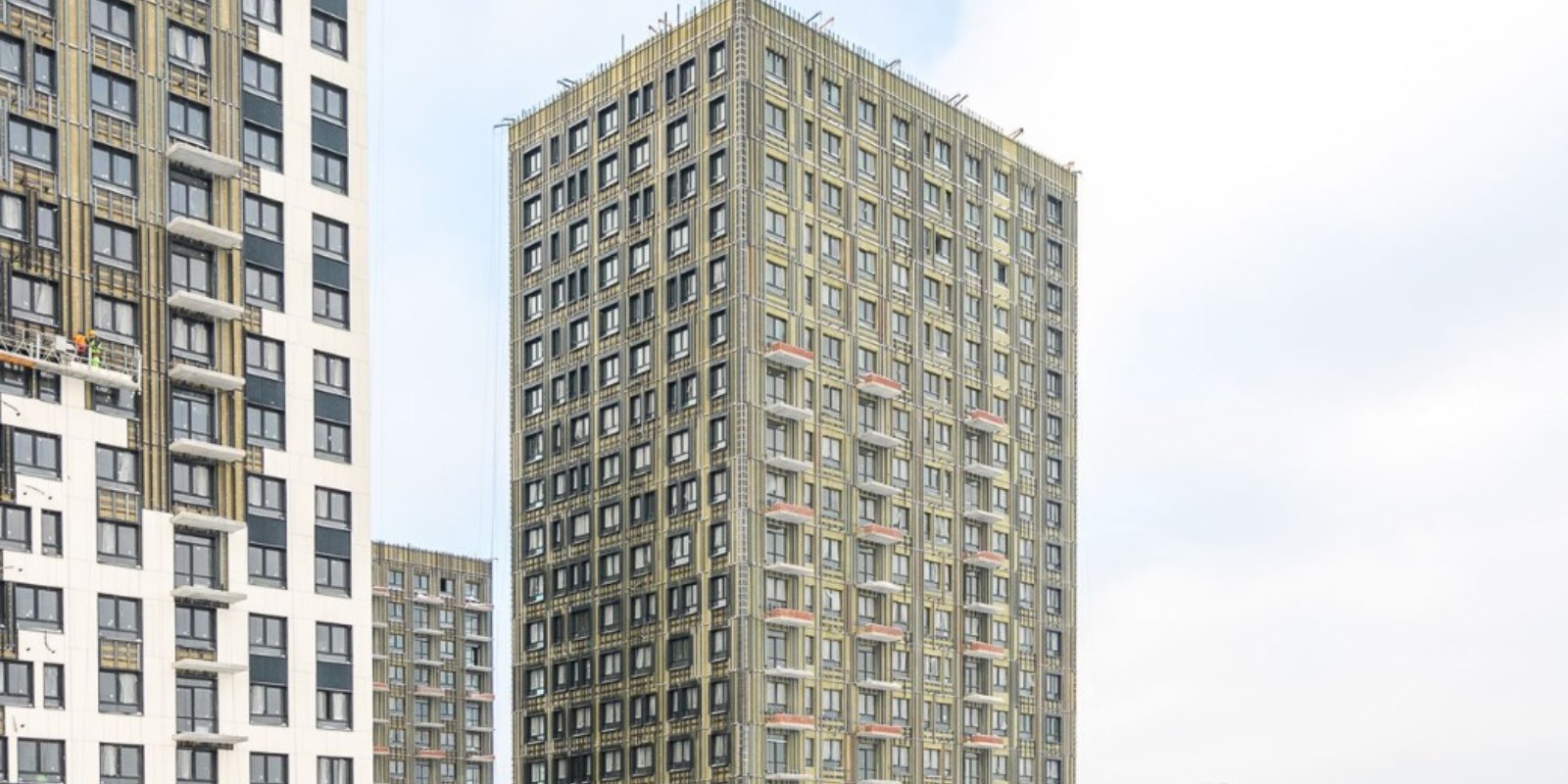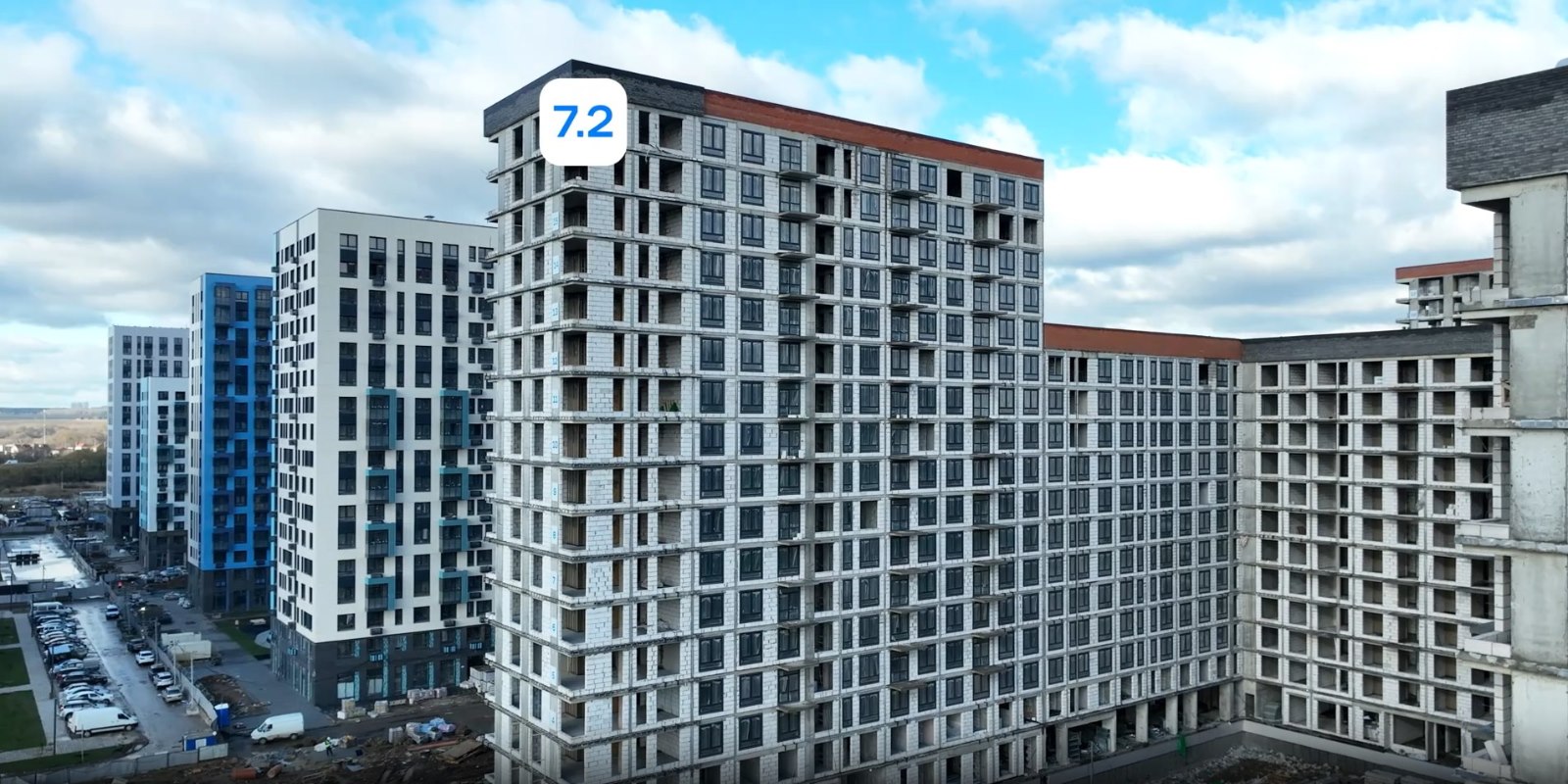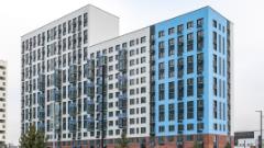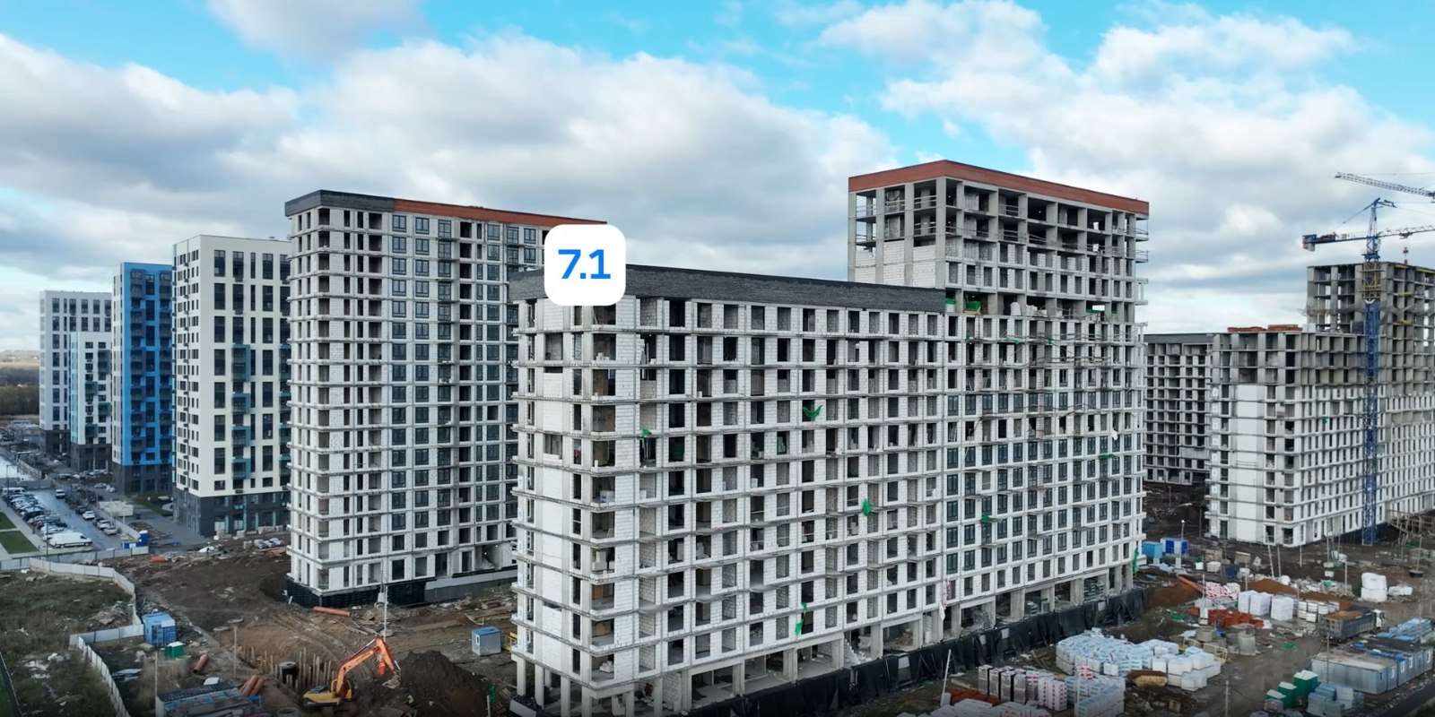 Монолитные дома высотой 12–17 этажей с комбинированными фасадами из кирпича и фиброцементных плит как будто всегда здесь были — так гармонично они выглядят в природном ландшафте.