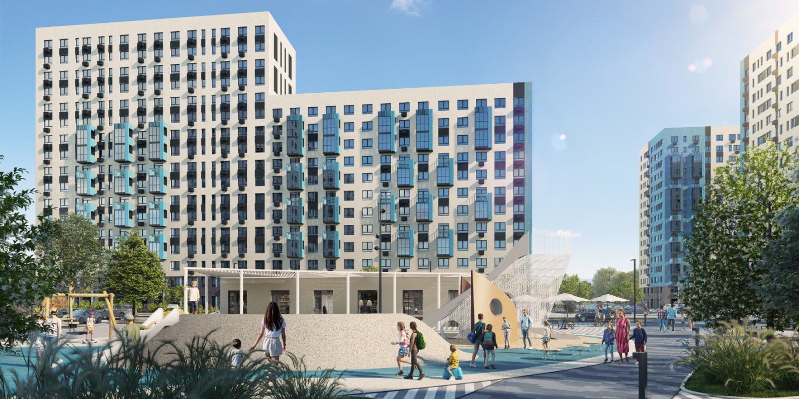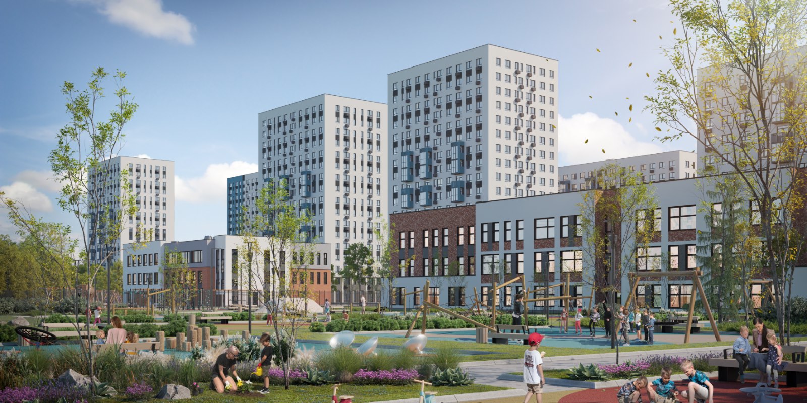 В «Прибрежном Парке» можно просто жить и наслаждаться моментами. Смотреть из окна, как ребенок сам идет в школу, или гулять с малышом на игровой площадке и чувствовать, как он крепко сжимает руку. Мы построим 3 детских сада, один из которых уже открыт, школу, физкультурный комплекс с бассейном.