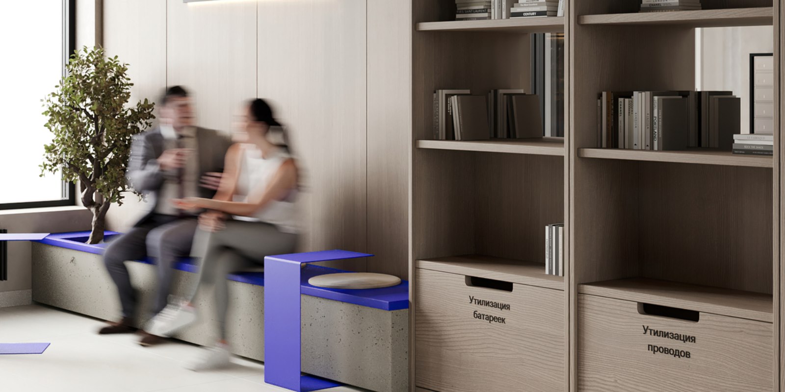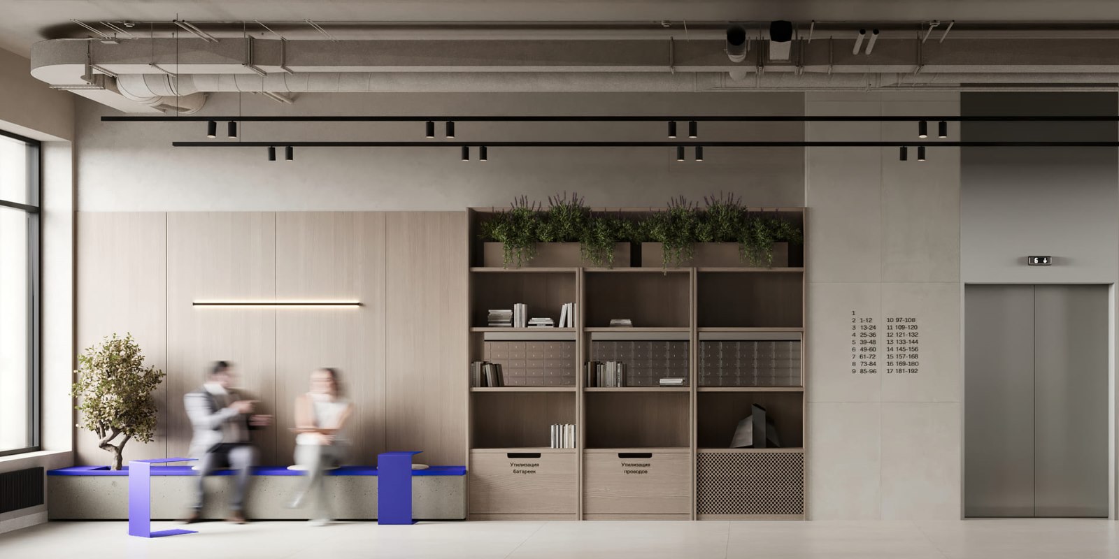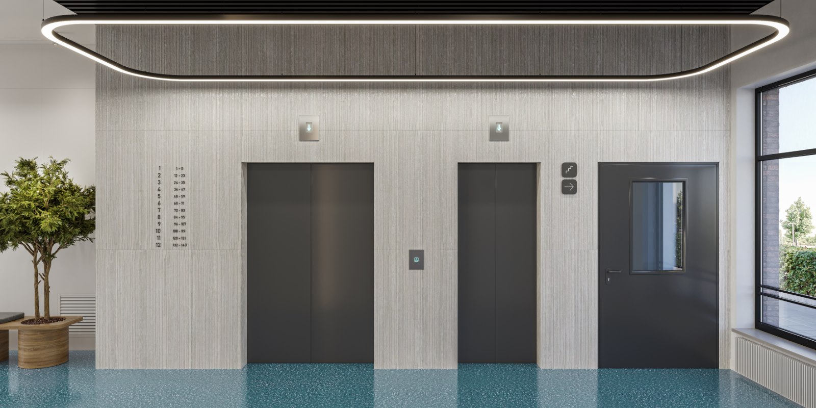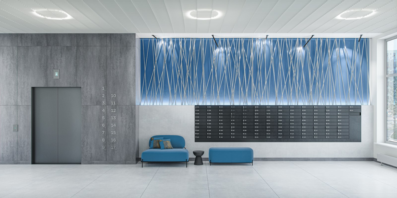 В интерьере холлов тема реки продолжается: имитация водопадов на стенах, подсветка с ощущением ряби на воде, много солнечного света сквозь панорамные окна.