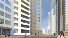 При проектировании комплекса использовались интересные архитектурные решения. Как следствие, ЖК выглядит легким и плавным. Панорамные окна с оригинальной геометрией цветных линей дополняет этот образ.