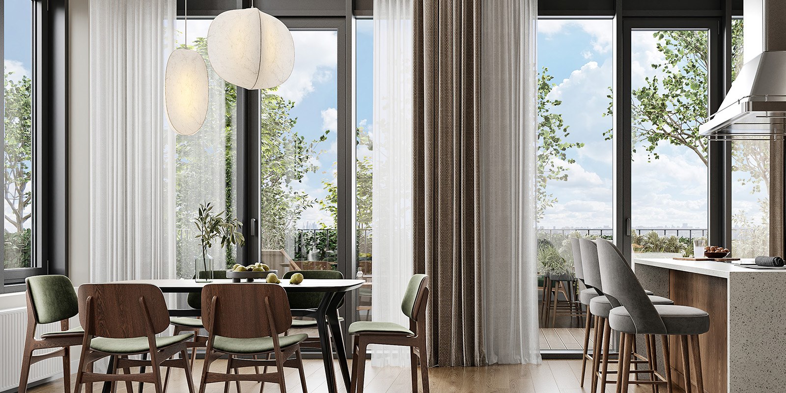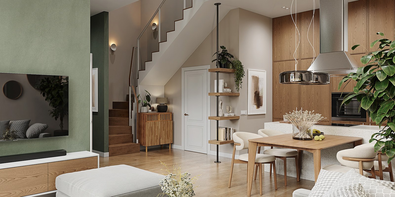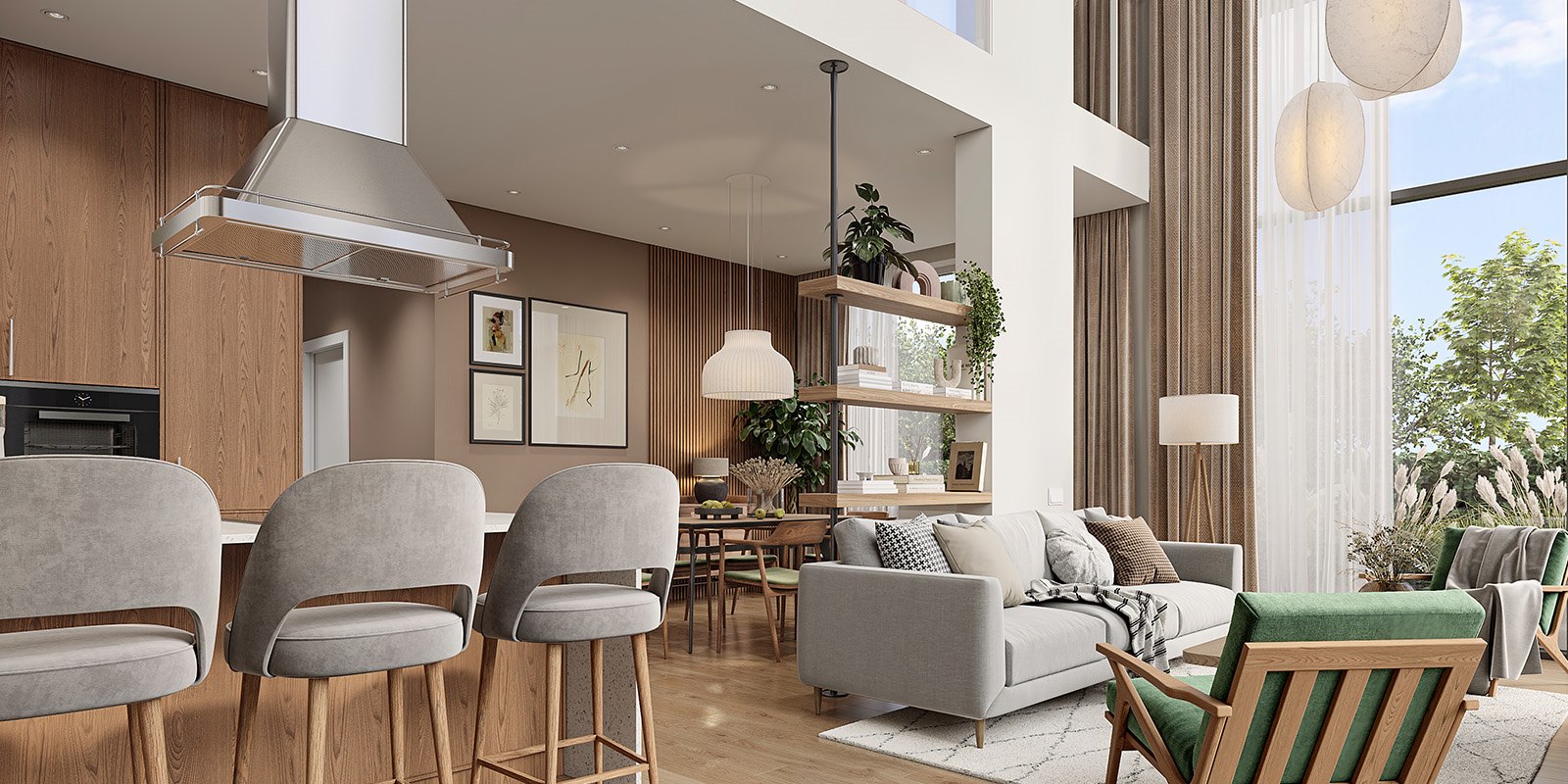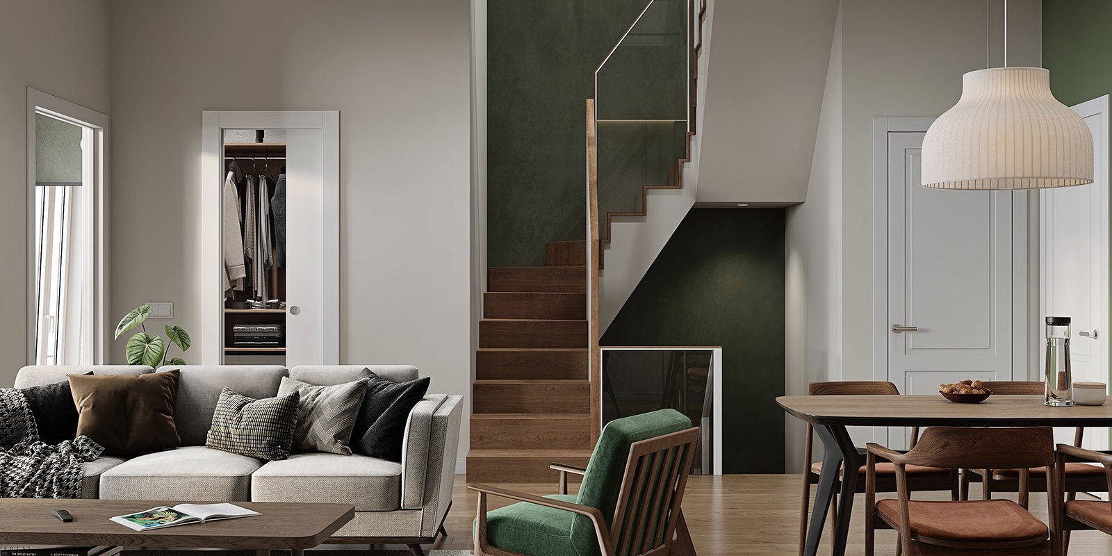 Двухуровневые квартиры напоминают загородный дом. Пространство в них можно разделить на приватное и общественное, расположив на одном этаже спальни, на другом — хозяйственные помещения и кухню-гостиную. В последней мы проектируем большие окна с панорамным видом. Они наполняют комнату светом и превращают в идеальное место для семейных праздников, игр с детьми и встреч с друзьями.