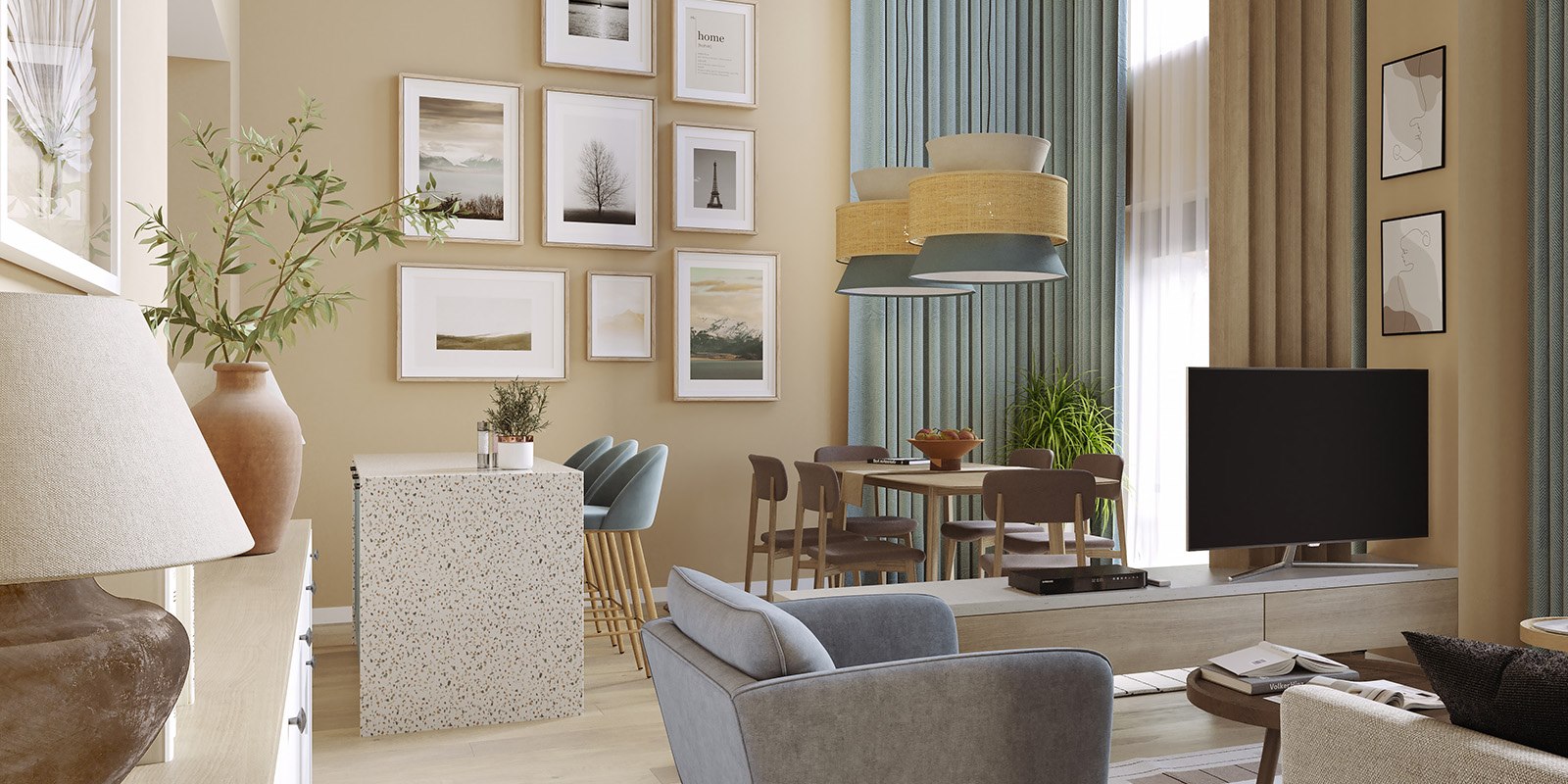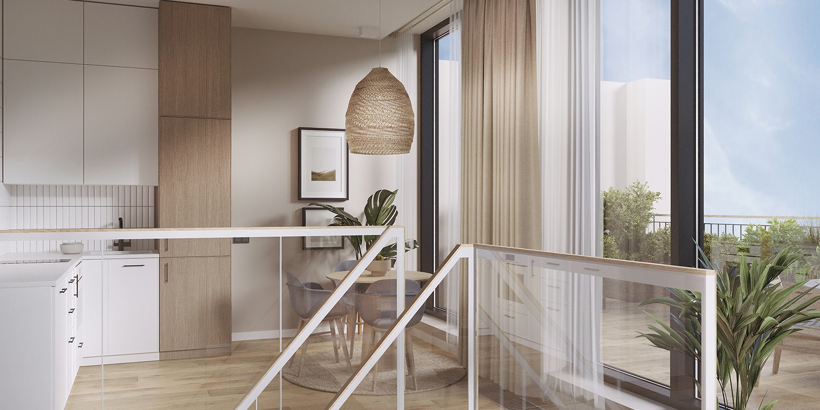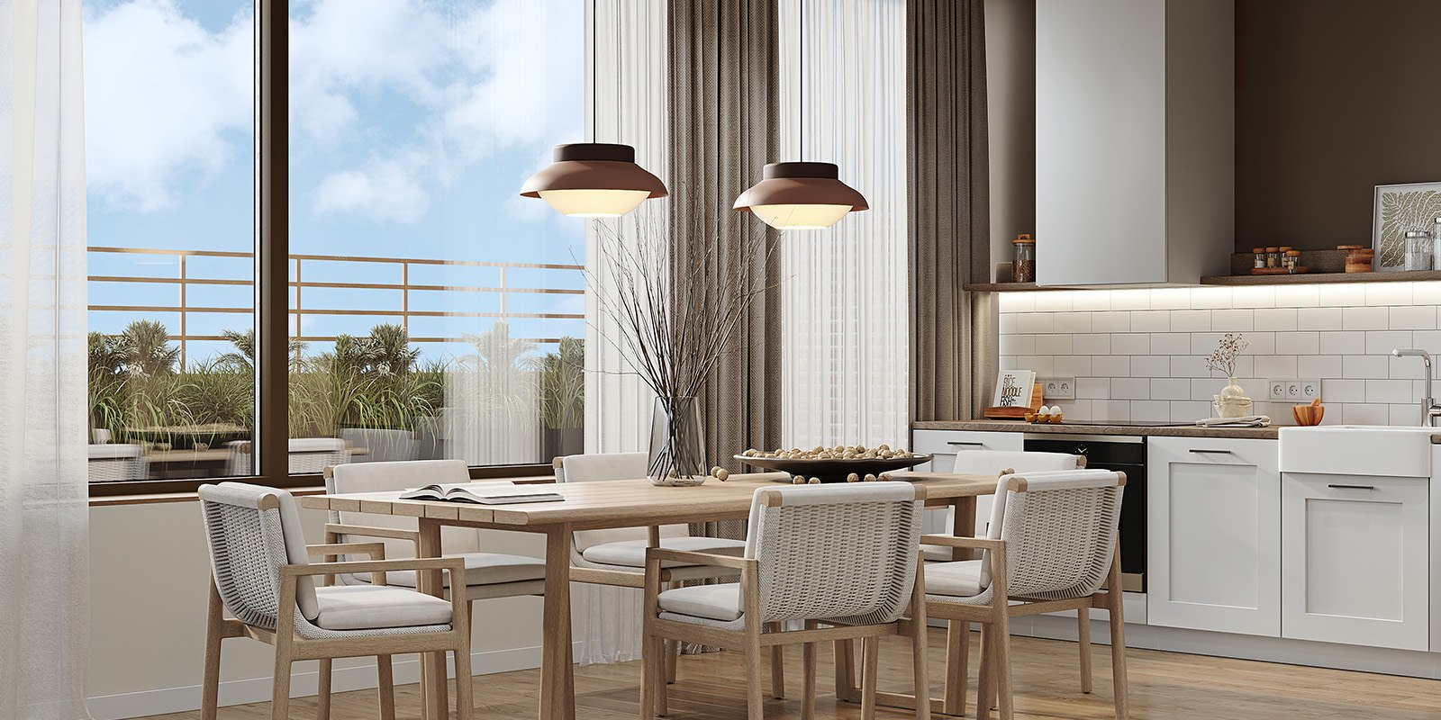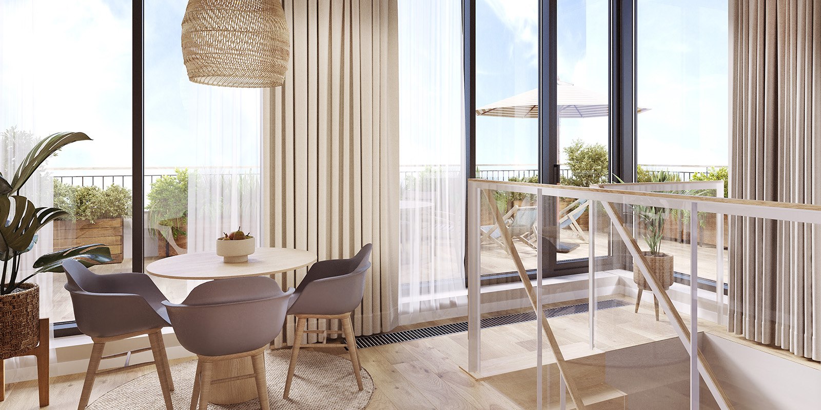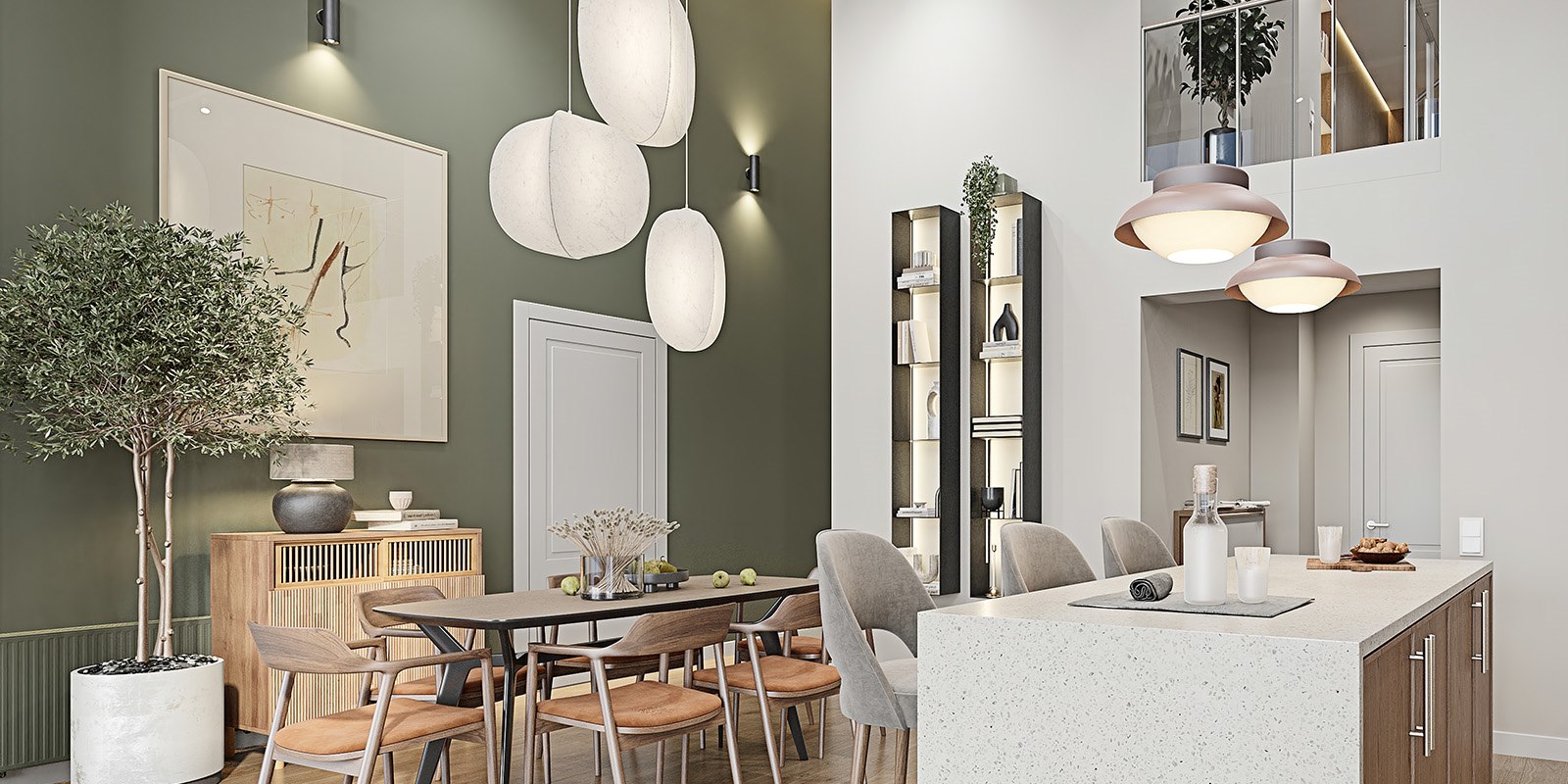 Двухуровневые квартиры напоминают загородный дом. Пространство в них можно разделить на приватное и общественное, расположив на одном этаже спальни, на другом — хозяйственные помещения и кухню-гостиную. В последней мы проектируем большие окна с панорамным видом. Они наполняют комнату светом и превращают в идеальное место для семейных праздников, игр с детьми и встреч с друзьями.