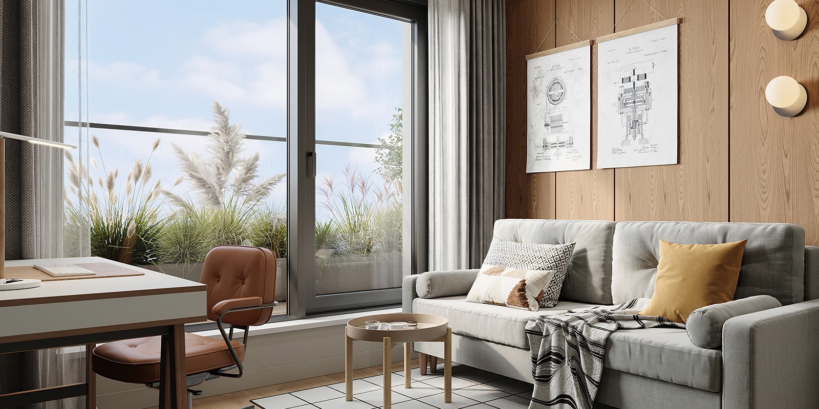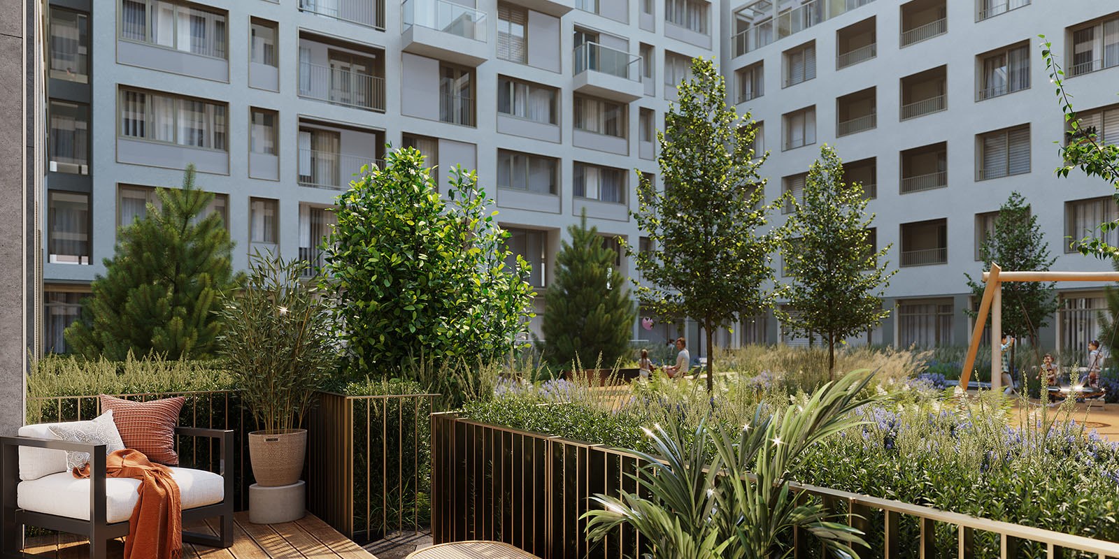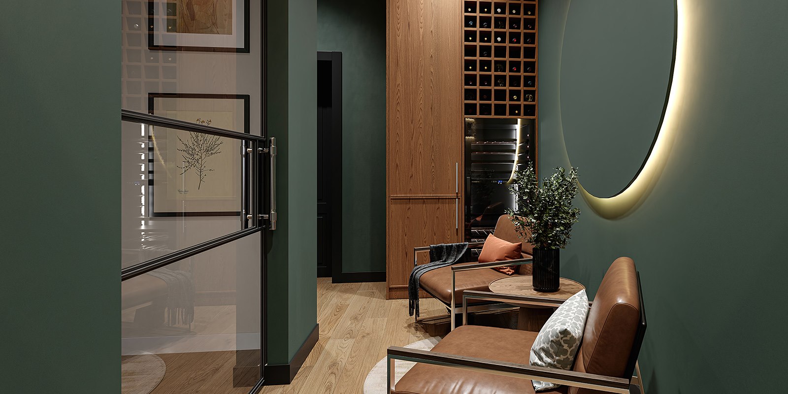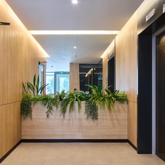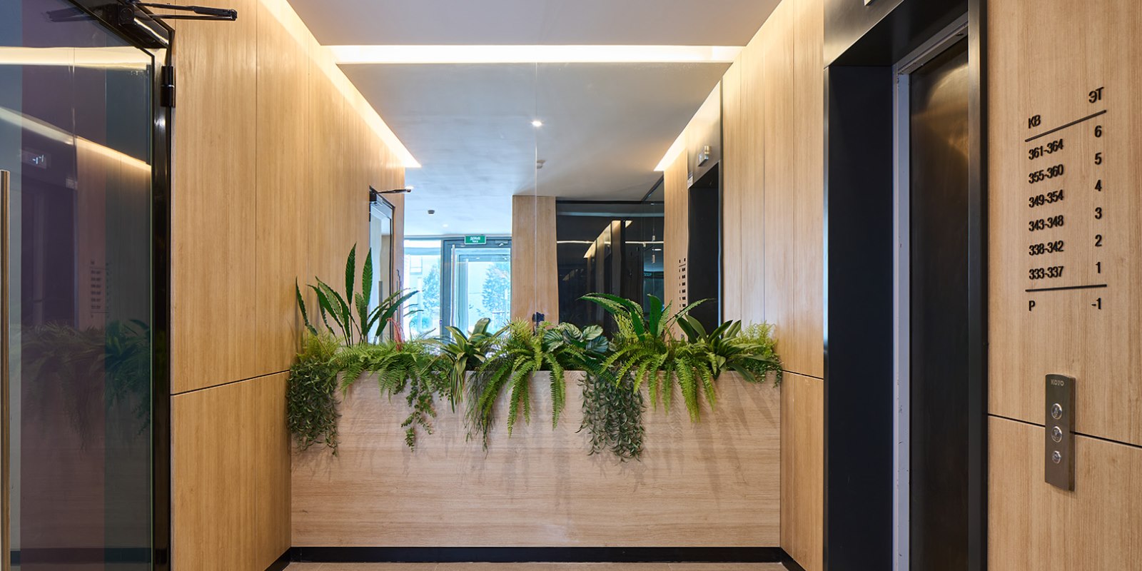 Элементы интерьера подъездов повторяют ритм и декор фасадов квартала. В основе концепции — уют и функциональность. В холлах использованы природные износостойкие материалы, визуально привлекательные и приятные на ощупь. Приглушенное освещение создает расслабленную и домашнюю атмосферу.
