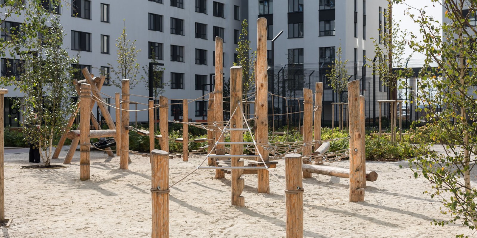 При создании игровых площадок мы используем только натуральные материалы. Сами конструкции делаем как можно более абстрактными (чтобы вдохновлять ребенка творчество, а не диктовать ему сценарий игры).