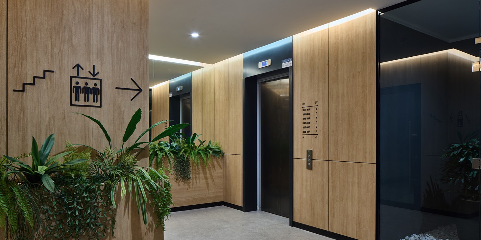 Все двери — прозрачные: видно, что происходит в подъезде и вне его. Пространство остаётся проницаемым и безопасным. Лифты бесшумные без машинного отделения, зарубежного производства. В высотных секциях установлено два грузопассажирских лифта для комфортного перемещения и экономии времени на ожидании.