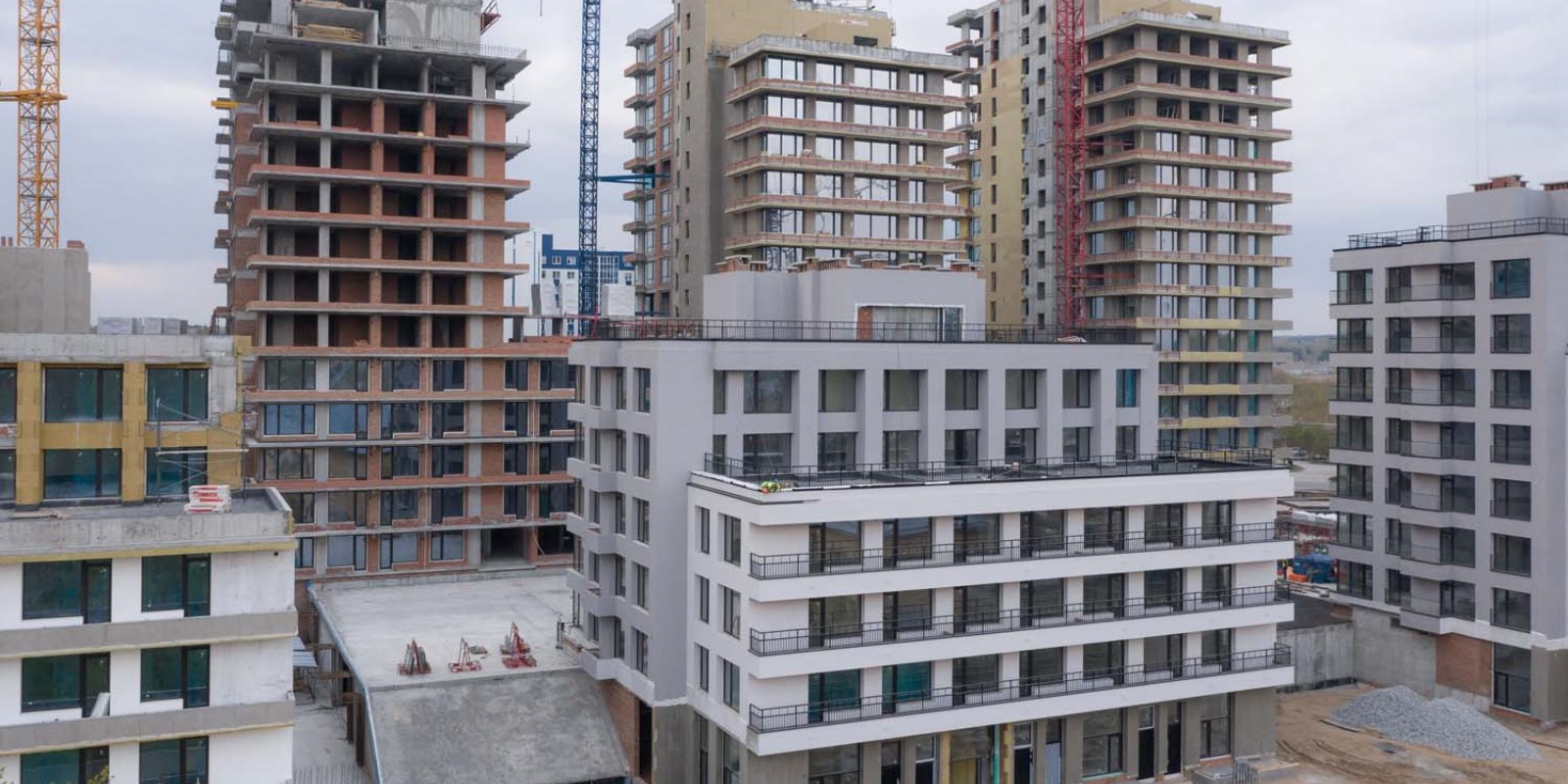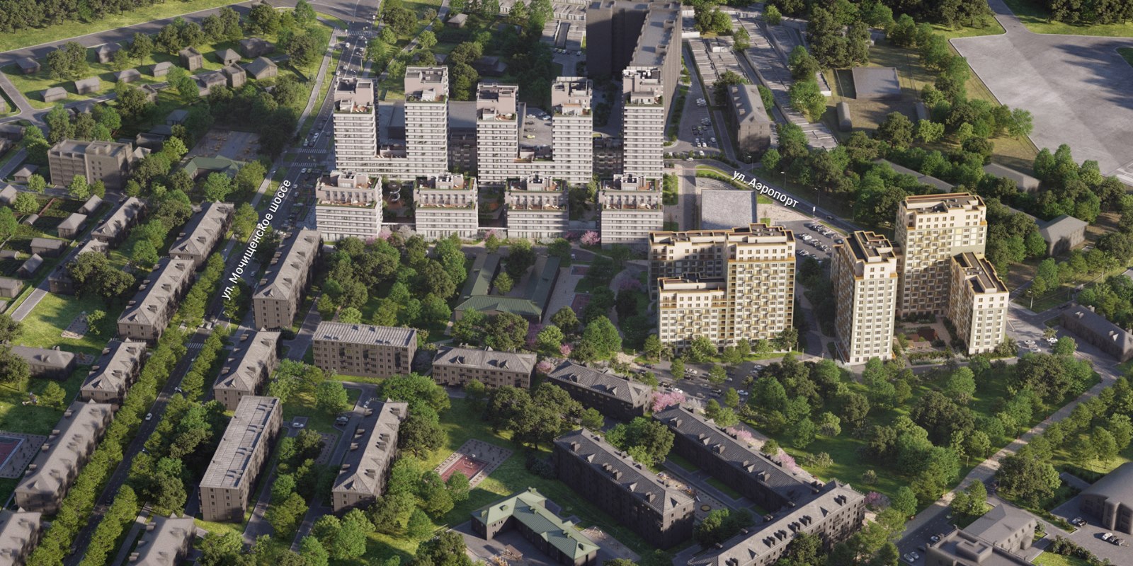 Квартал состоит из восьми домов. Вдоль улицы Аэропорт расположено 6-18-этажное здание с видовыми квартирами. Оно защищает внутреннее пространство от шума и пыли. В центре — четыре 7-9-этажные урбан-виллы. Для них характерны увеличенная площадь квартир, повышенная приватность и малое соседство (30 — 40 квартир). Завершают комплекс два полузакрытых блока высотой 8-16 этажей с фасадами фисташкового цвета и подземной парковкой. Благодаря переменной высотности застройка приобретает человеческий масштаб, во дворы проникает больше света, а число квартир, из которых открывается красивый вид, значительно увеличивается.
