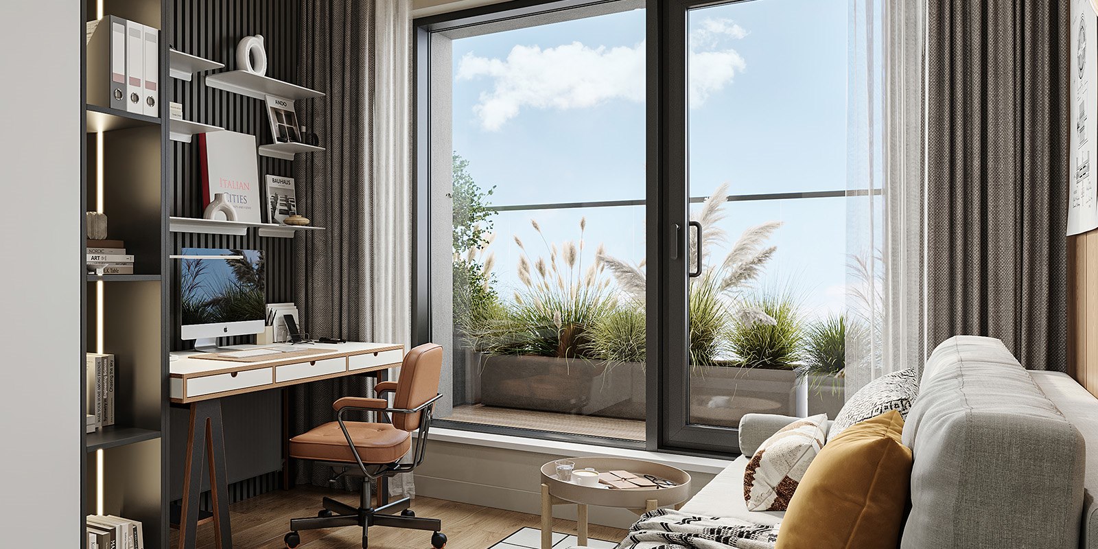 Со стороны улицы Аэропорт расположены коммерческие помещения. После ввода дома в эксплуатацию здесь открываются разные полезные сервисы для жителей: магазины, аптеки, кафе. В каждом торгово-офисном помещении спроектирован отдельный вход, сделаны высокие потолки и панорамные окна на улицу.