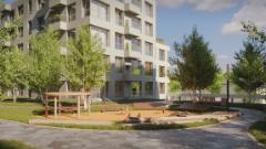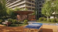 Первые этажи вдоль Мочищенского шоссе и улицы Аэропорт мы отдали под полезные сервисы и магазины. Активный фронт позволил интегрировать квартал в городской контекст. На территории «Авиатора» расположен многофункциональный спортивный комплекс с открытым амфитеатром, который станет центром притяжения всего района.