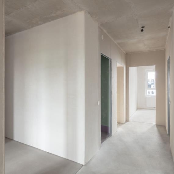 Мы сдаём квартиру с предчистовой отделкой. Это наиболее удобный для покупателей формат. Все грязные, пыльные, шумные работы мы уже выполнили: залили стяжку с шумоизоляцией, выстроили ровные межкомнатные стены, развели электрику и слаботочку.