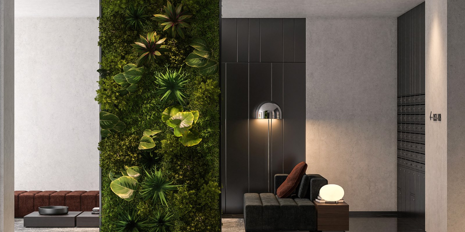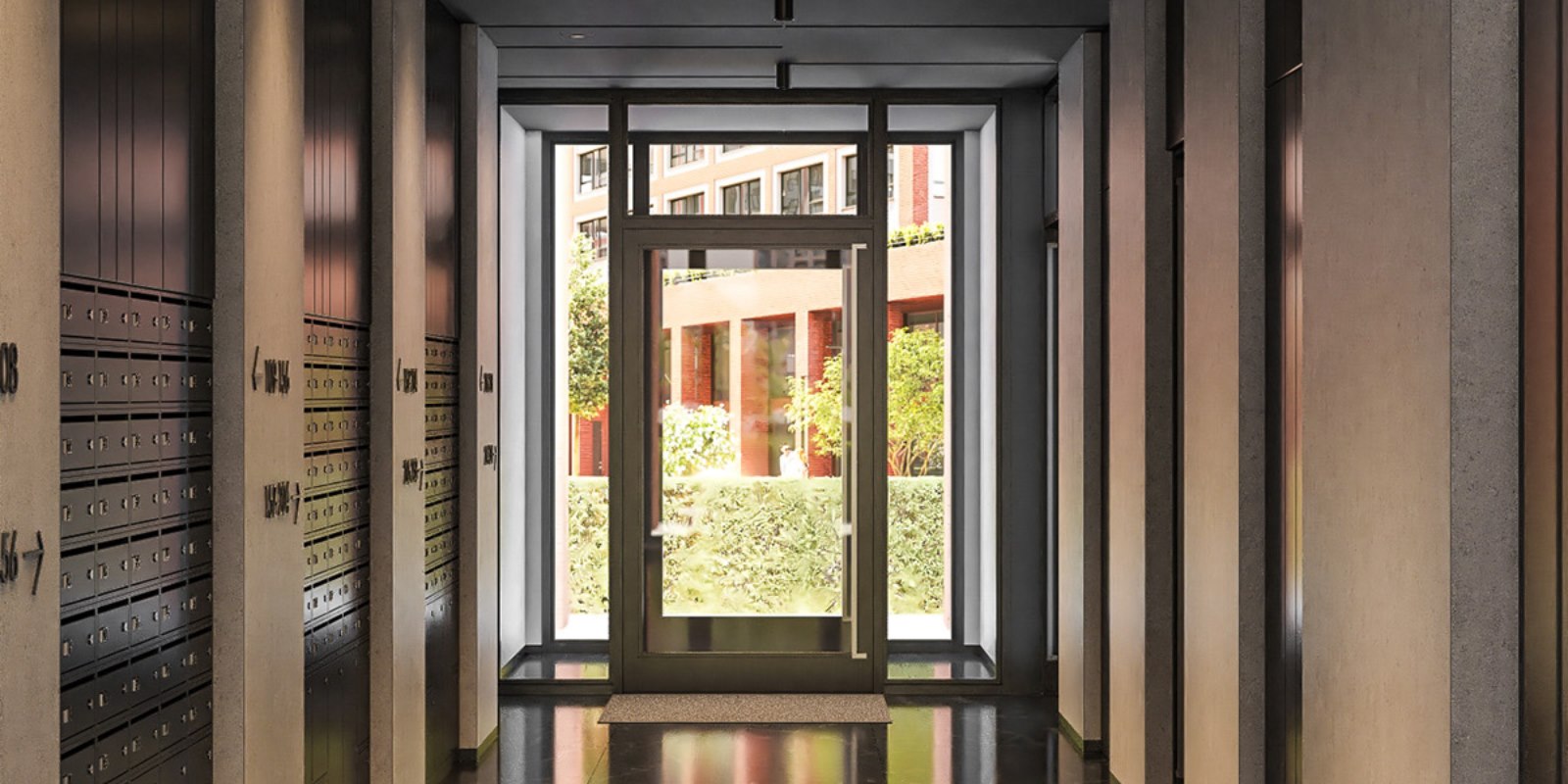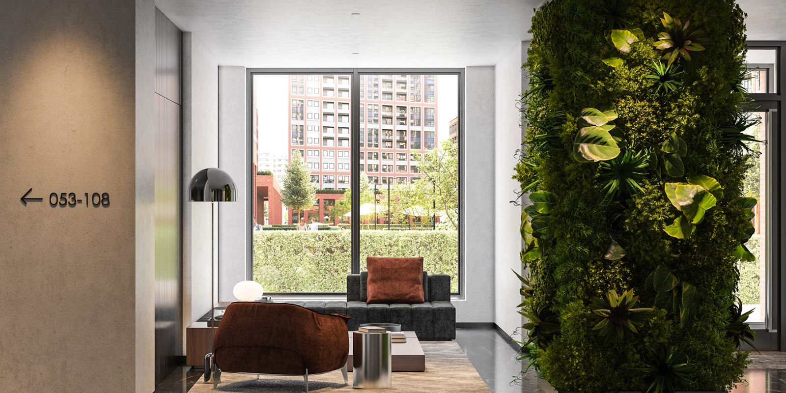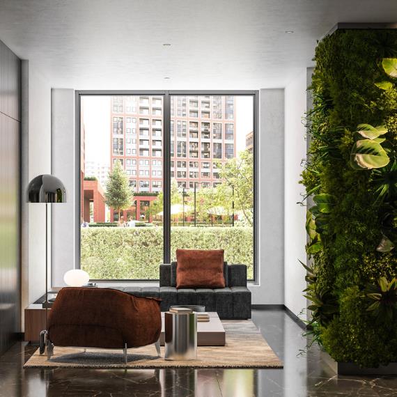 Подъезды во всех домах сквозные, с прозрачными входными группами и большими лифтами. Для мест общего пользования архитекторы разработали индивидуальные дизайн-проекты. За счет мягкой мебели, многоуровневого освещения теплых оттенков и декоративных элементов (например, зеркал и картин) холлы воспринимаются как продолжение квартиры.