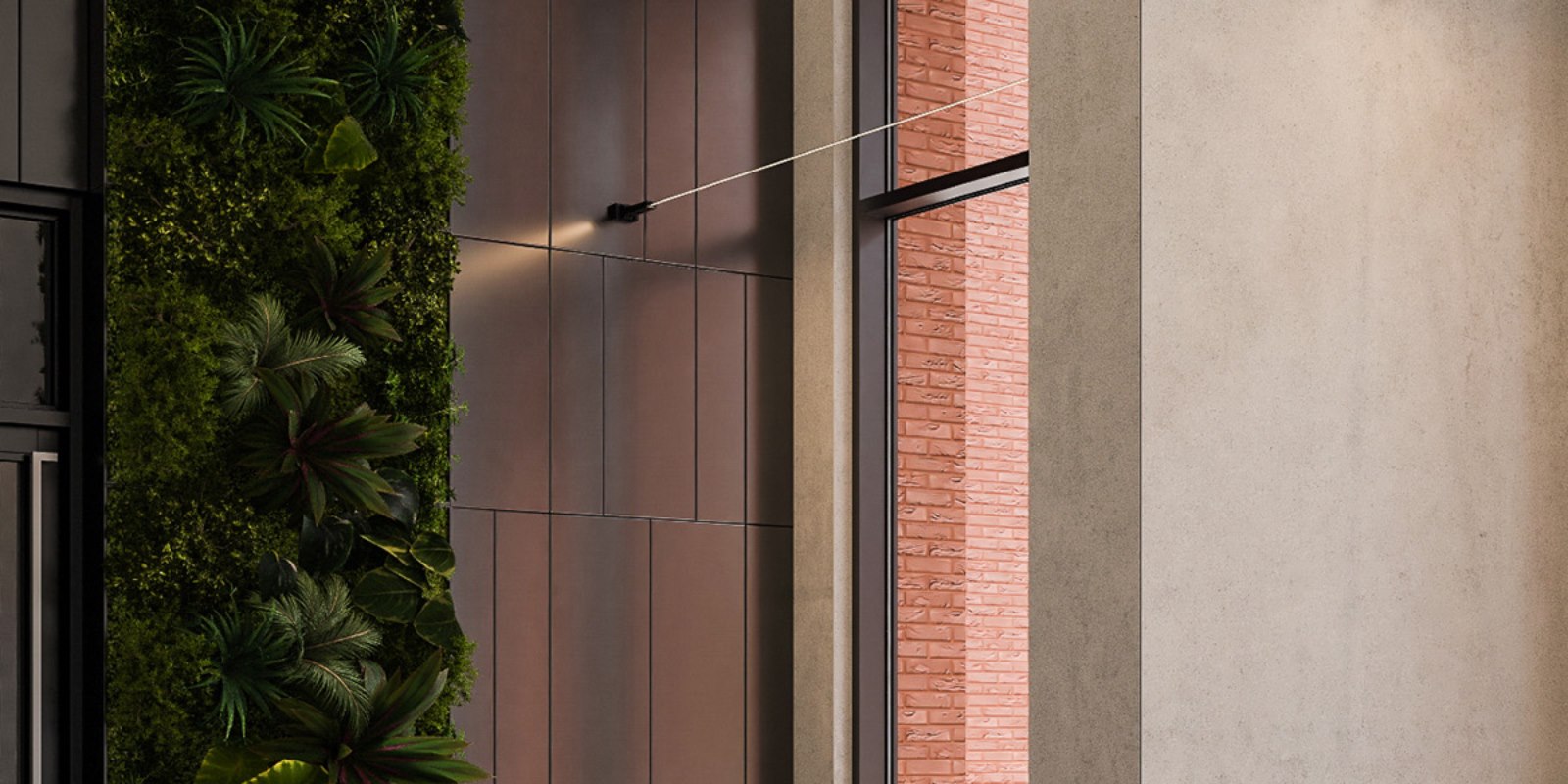 Фасад урбан-вилл — строгий с регулярной сеткой, в стиле современной немецкой архитектуры. Он выполнен из кирпича со штукатурными вставками. Большие оконные проёмы, чередующиеся лоджии, фактура и цвет задают динамику фасаду.