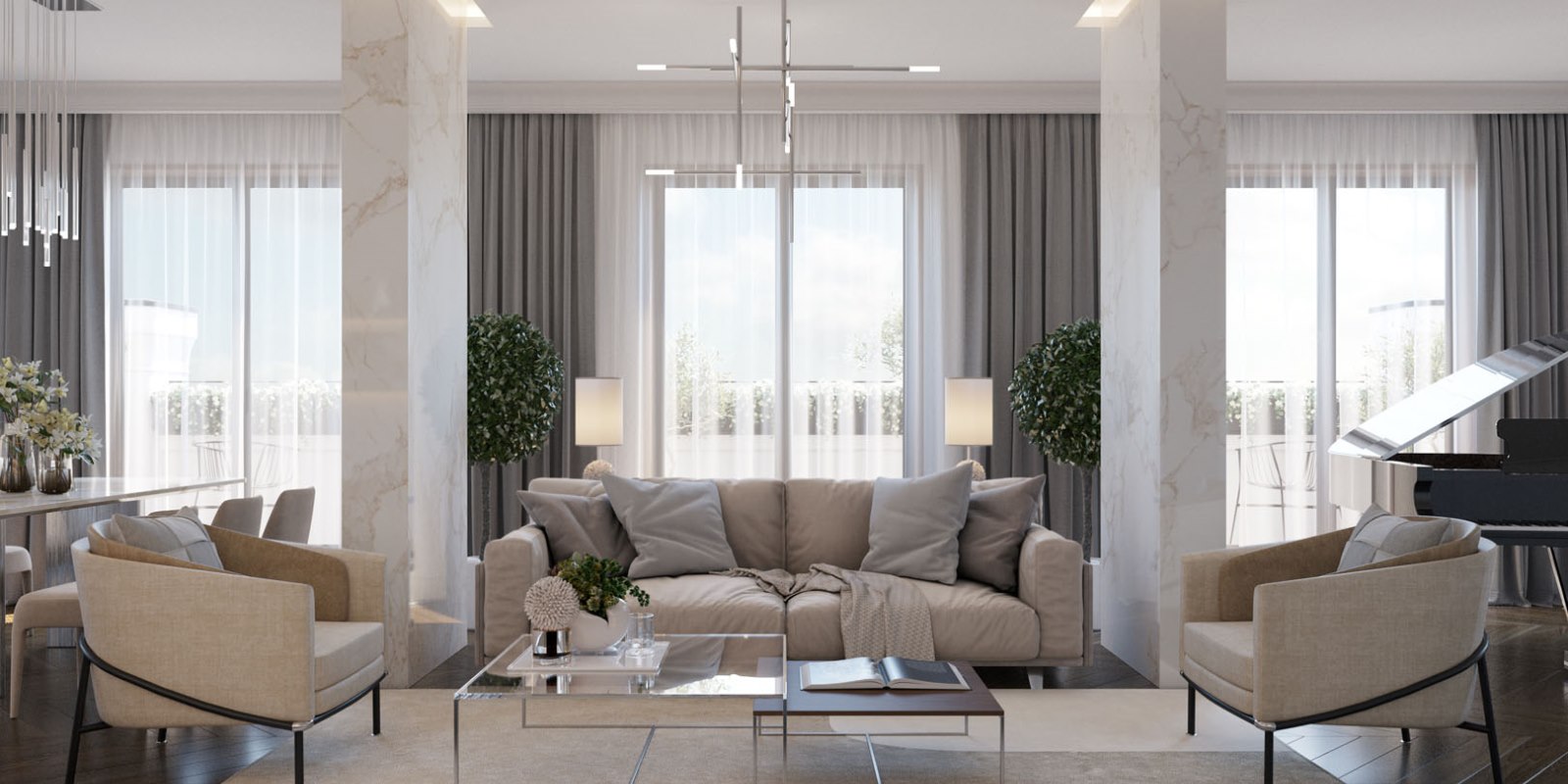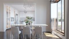 В урбан-виллах архитекторы спроектировали двухуровневые пентхаусы, по своему устройству напоминающие загородный дом. Пространство в них делится на две зоны: общественную с кухней-гостиной и приватную — с несколькими спальнями и гардеробными. У жителей таких квартир есть доступ на эксплуатируемую кровлю, где расположена летняя кухня и широкая терраса площадью более 60 кв. метров.