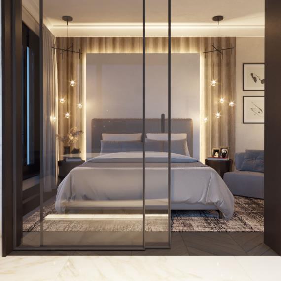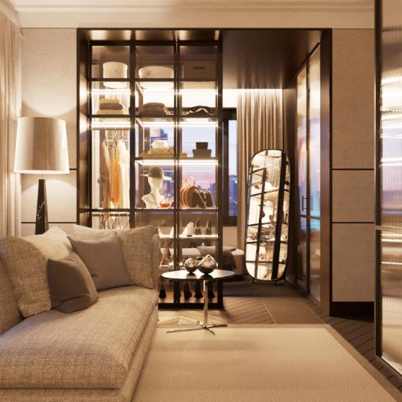 У этого планировочного решения несколько преимуществ. Во-первых, размер. Мастер-спальня значительно просторнее обычной, в среднем ее площадь составляет 20 кв. метров. Во-вторых, эргономичность. В этой комнате предусмотрена отдельная гардеробная, которая позволяет освободить квартиру от громоздких шкафов. Третье преимущество — наличие лоджии, которую можно превратить в рабочий кабинет или зону отдыха.