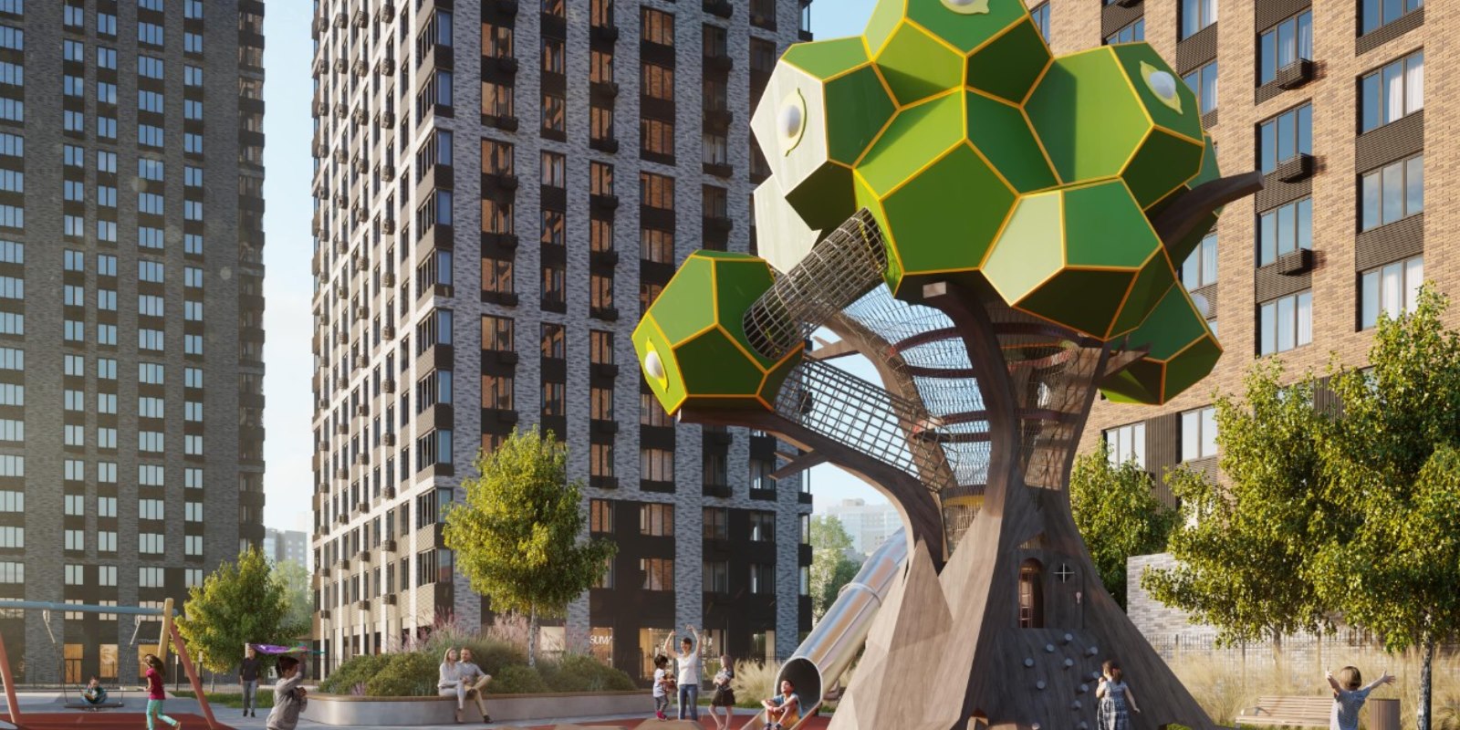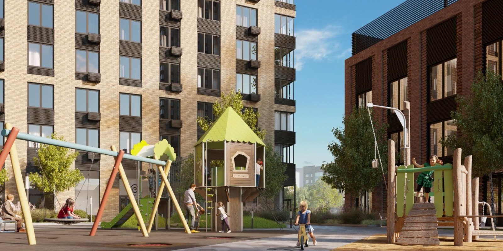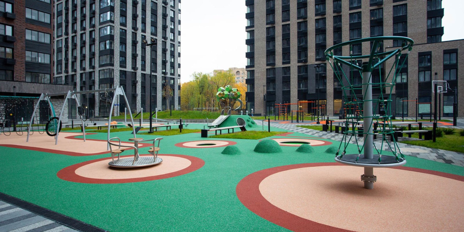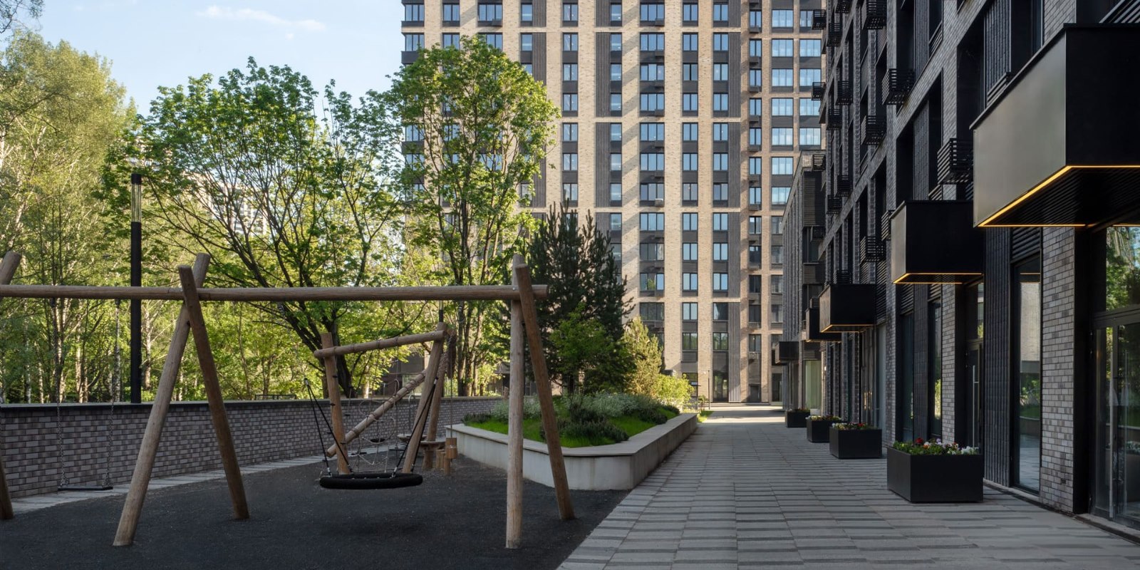 В «Фестиваль Парке» на общей территории соседствуют друг с другом видовые, малоэтажные и клубные дома. Поэтому вы можете любоваться огнями мегаполиса в полной тишине или предпочесть деревья, детский смех и пение птиц по утрам за окном.