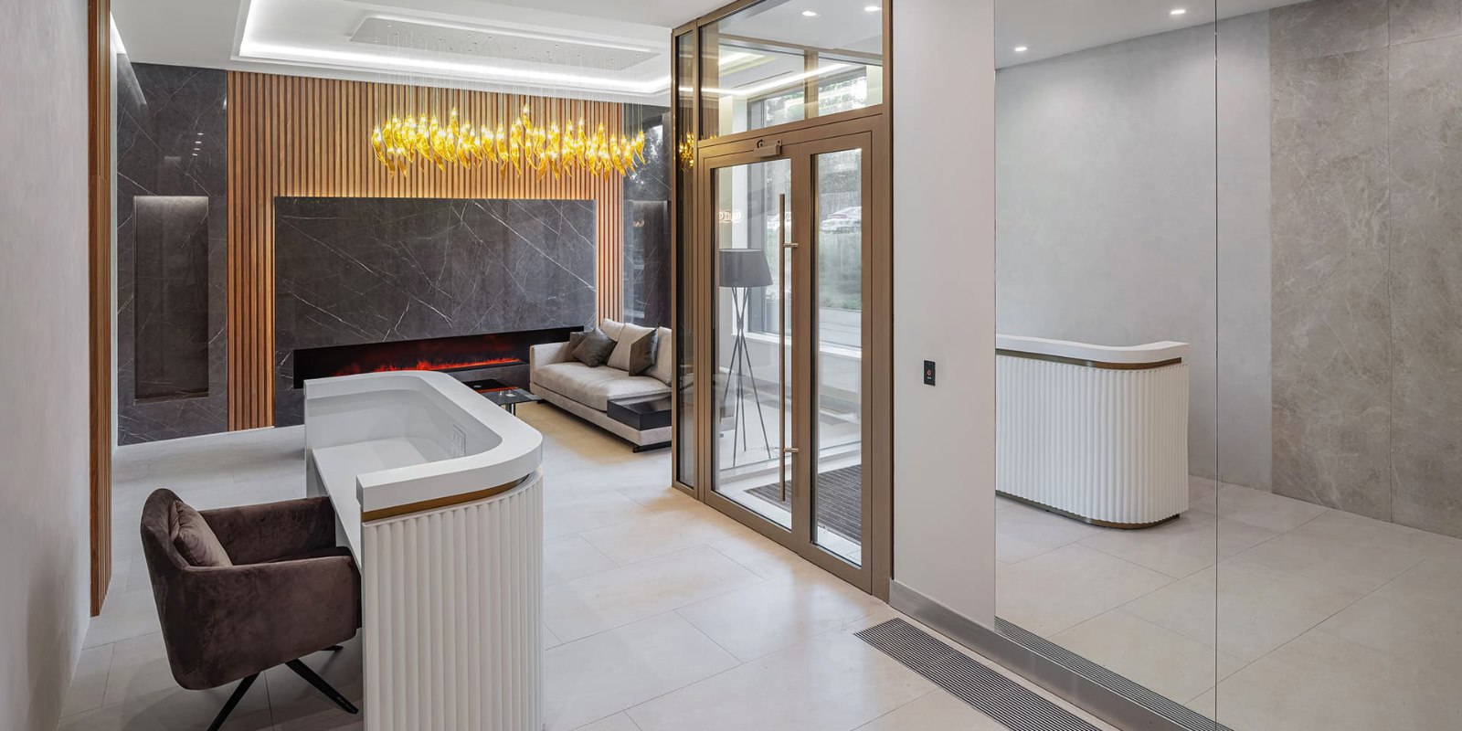 Авторы дизайн-проекта лобби ориентировались на элегантность и утонченность оформления, используя при этом максимальное количество натуральных и экологичных материалов. А высокие потолки позволят создать живой объем и наполнить пространство светом.