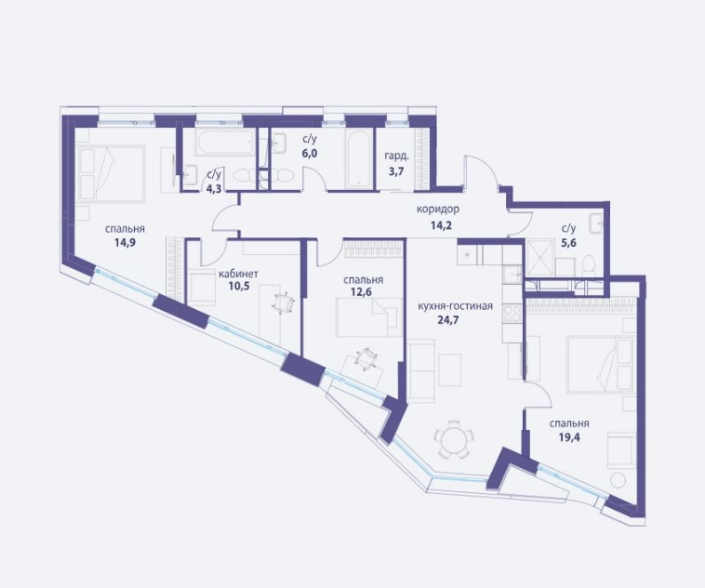4Комнаты115.5 M²Общая площадь24.7 M²площадь кухникухня12этаж